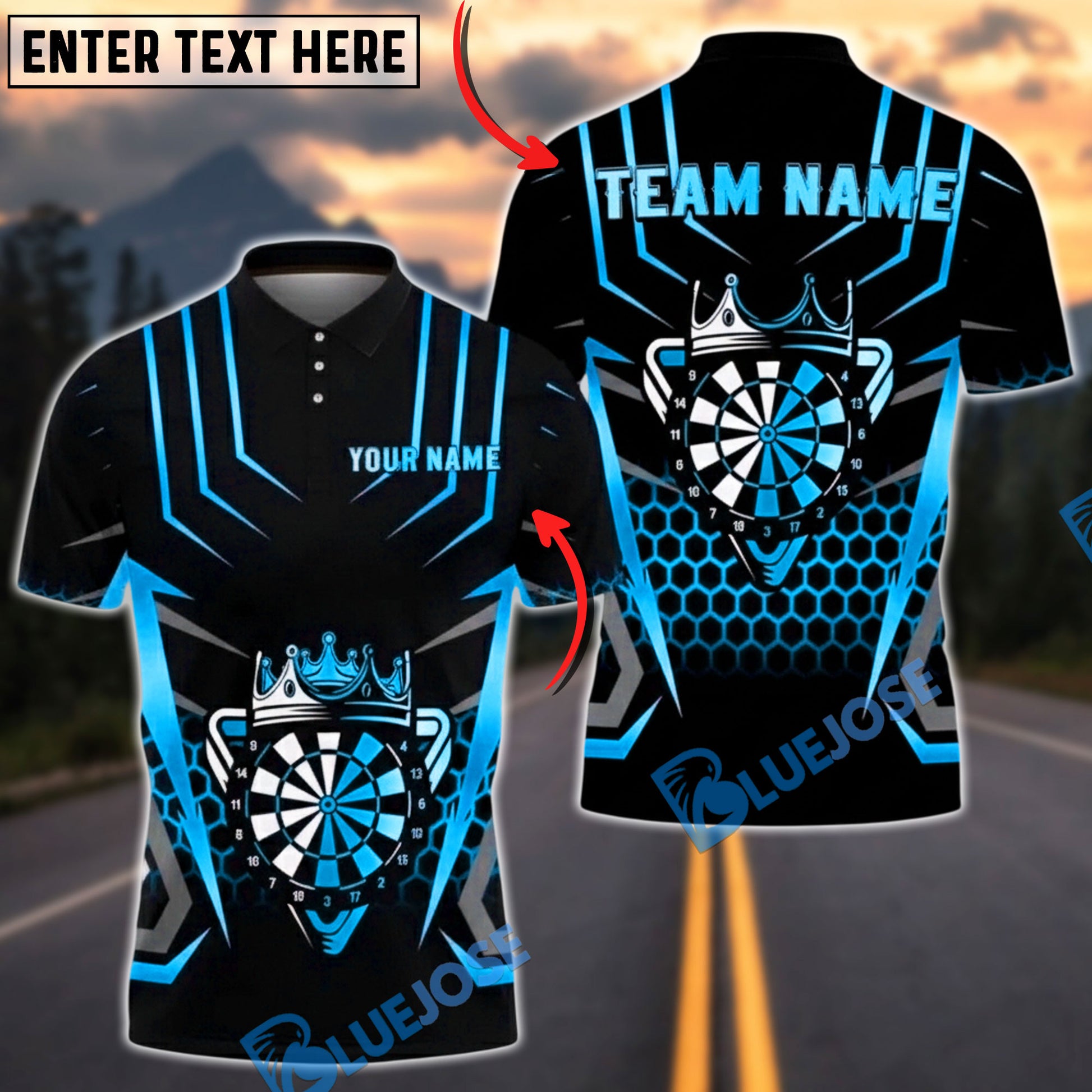 BlueJose Darts Gold Crown Target Honeycomb 3D Design Personalized Name, Team Name Unisex Shirt (6 Colors)