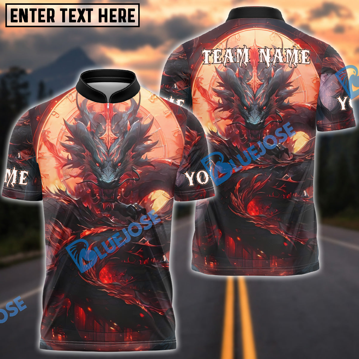 BlueJose Darts Golden Clockwork Dragon Fantasy Personalized Name, Team Name Shirt (4 Colors)
