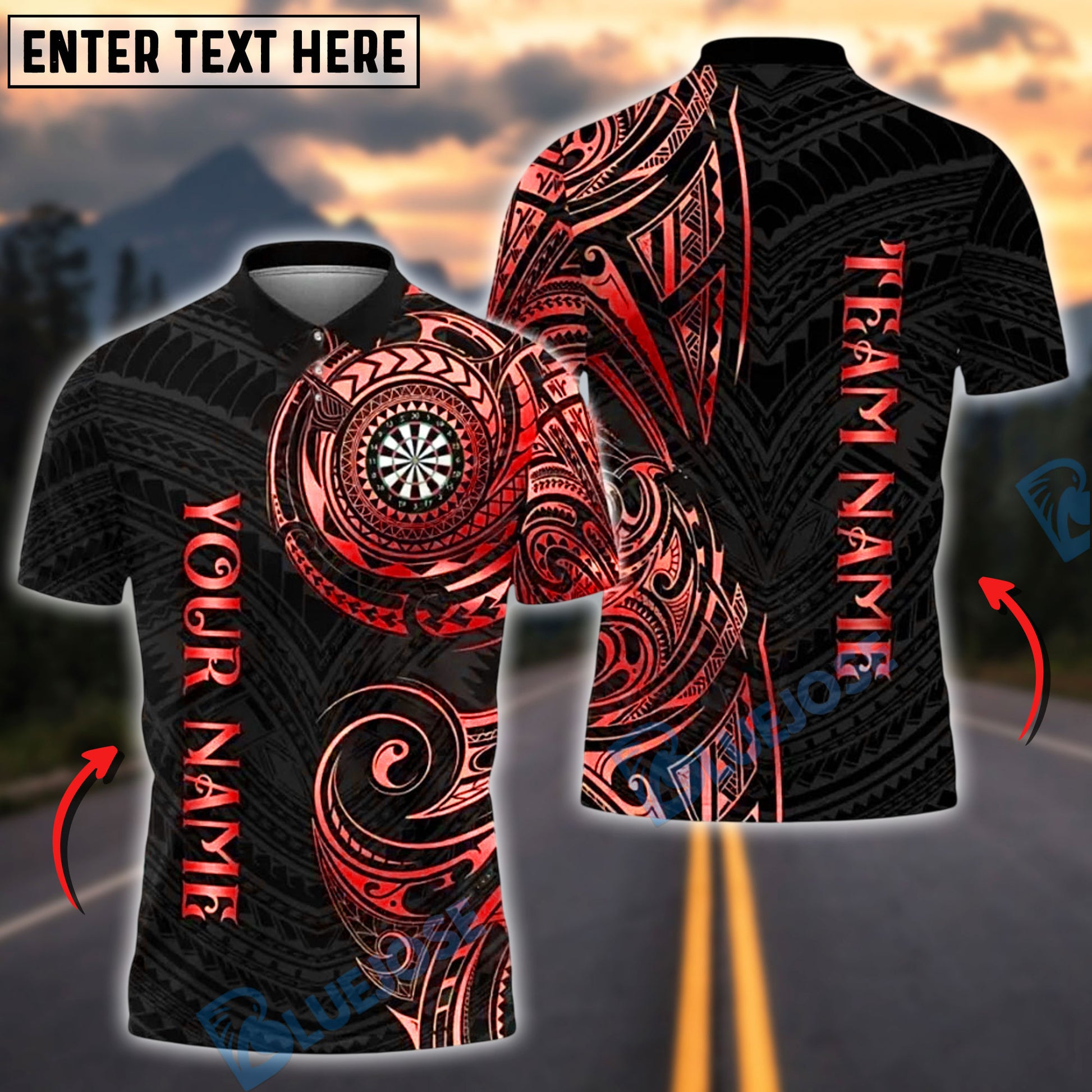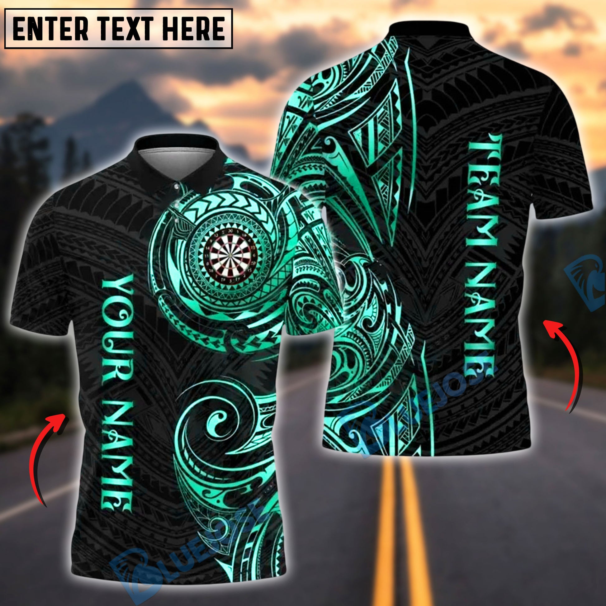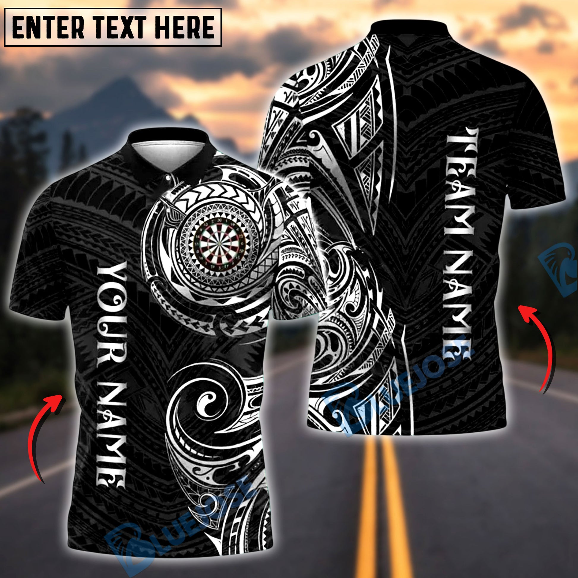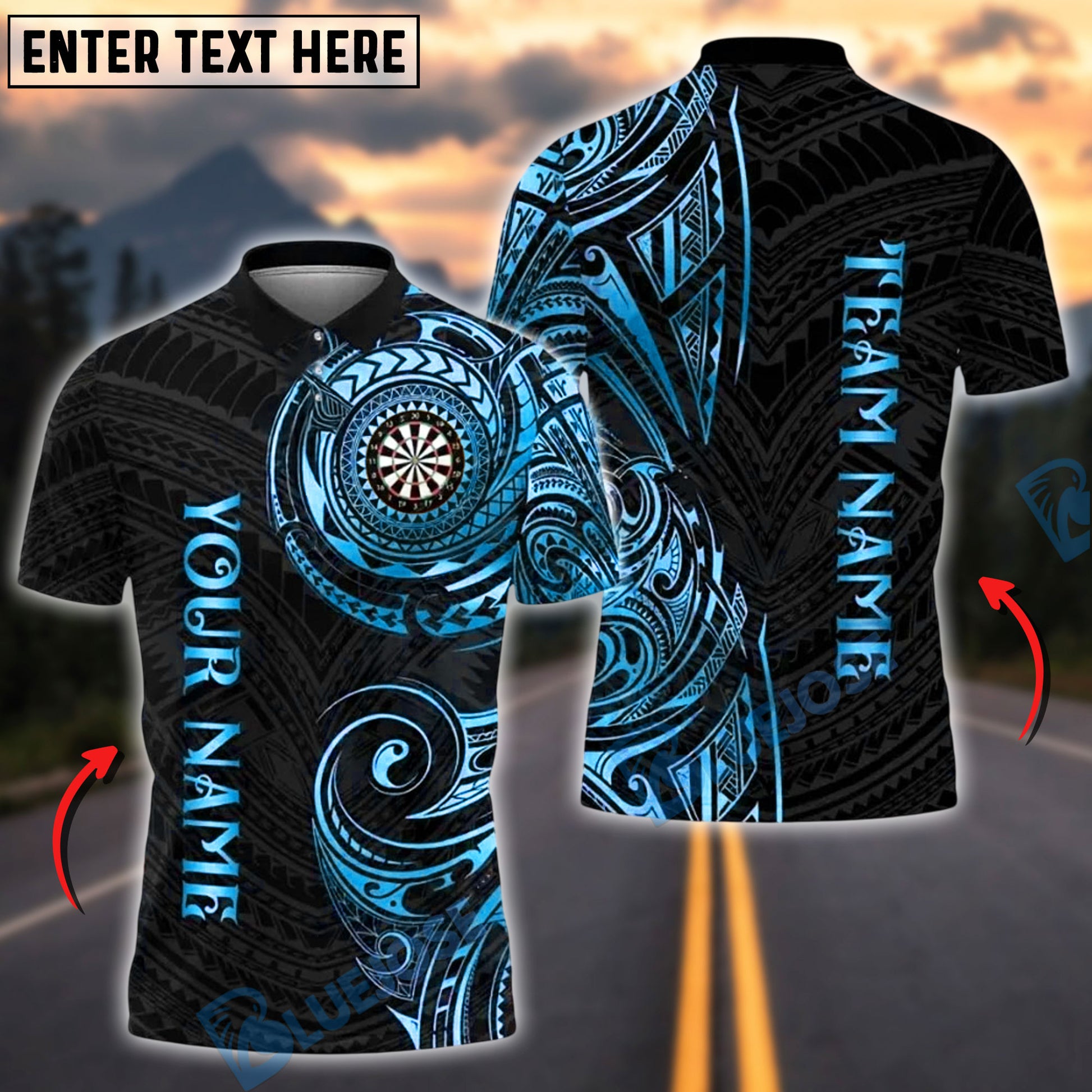 BlueJose Darts Golden Tribal Personalized Name, Team Name Shirt (6 Colors)