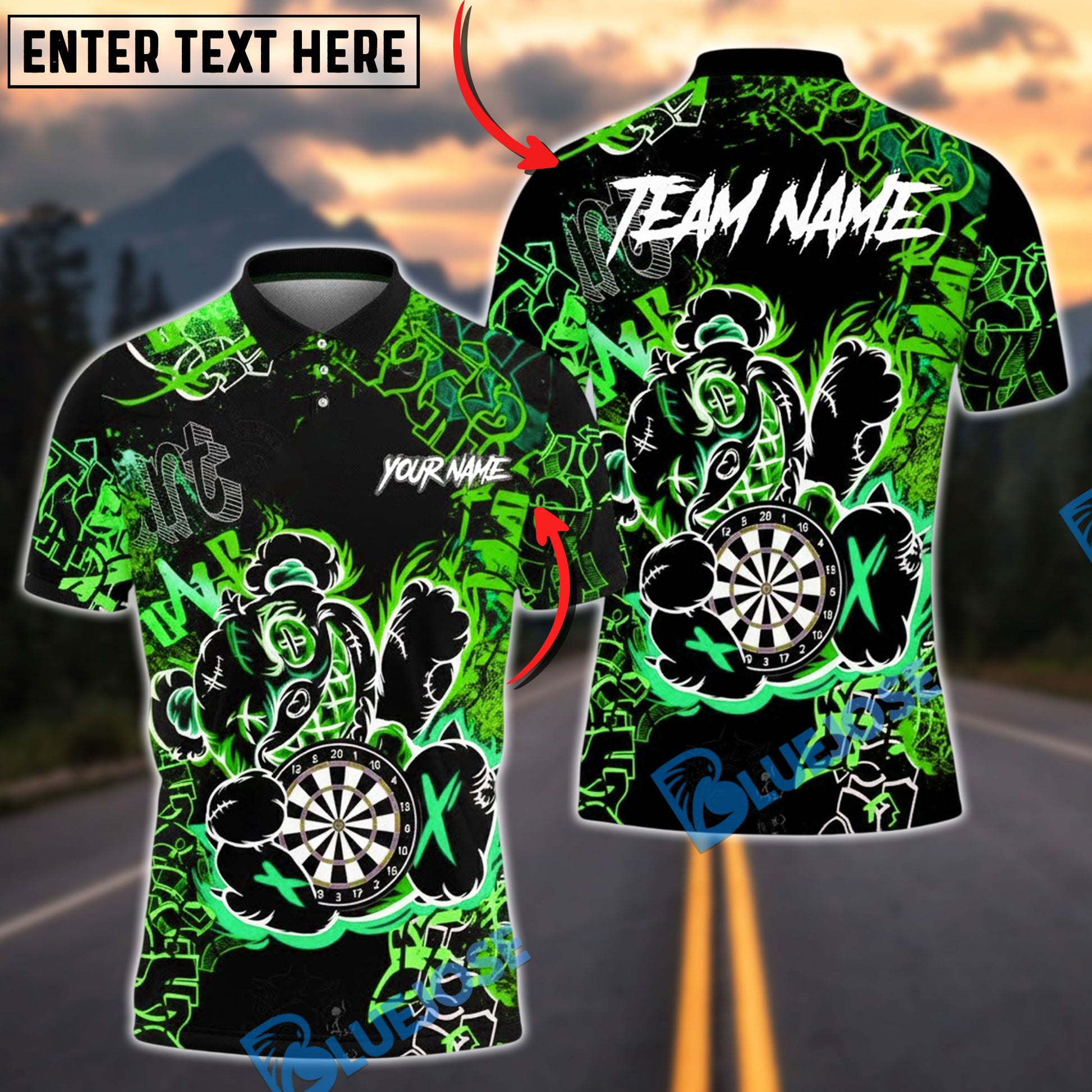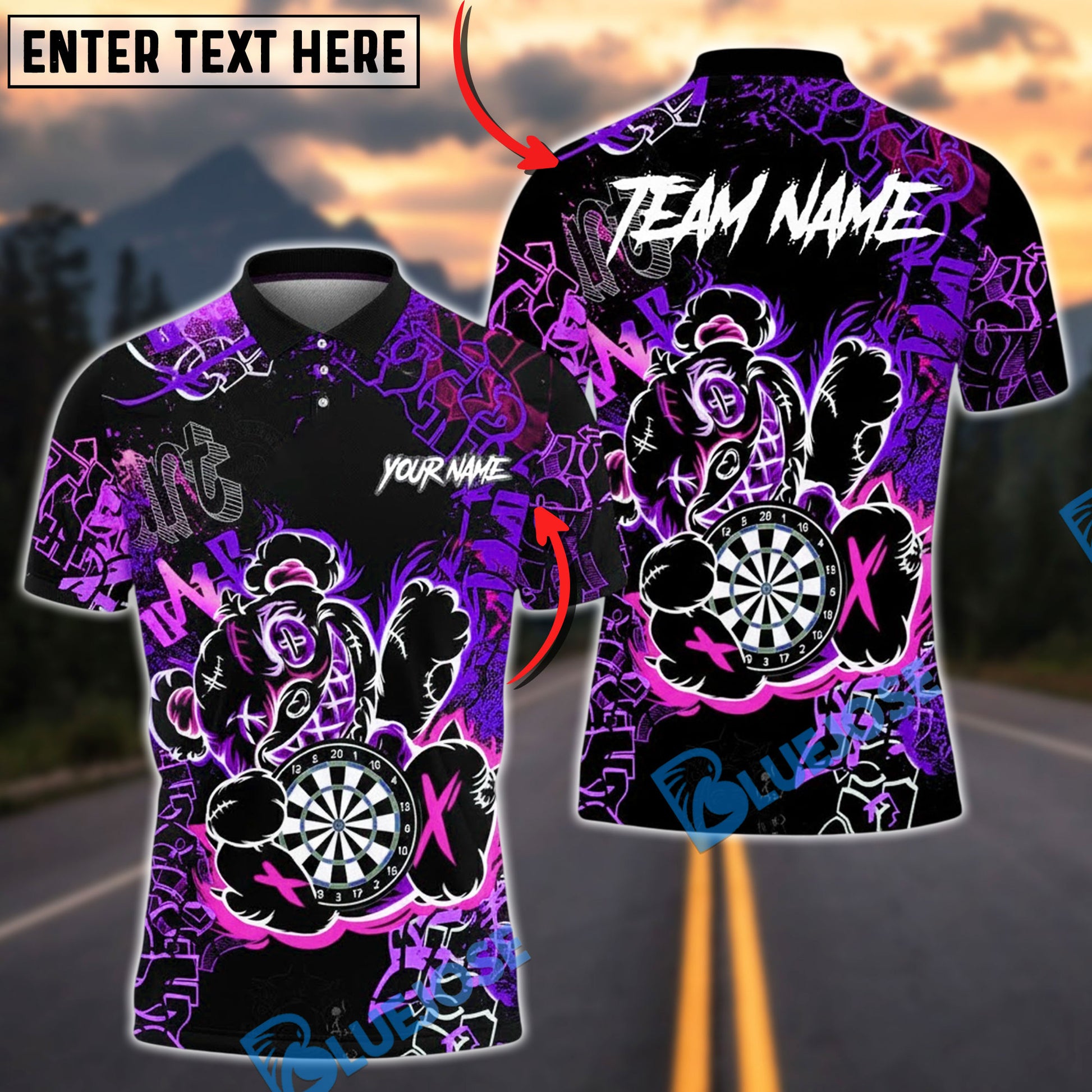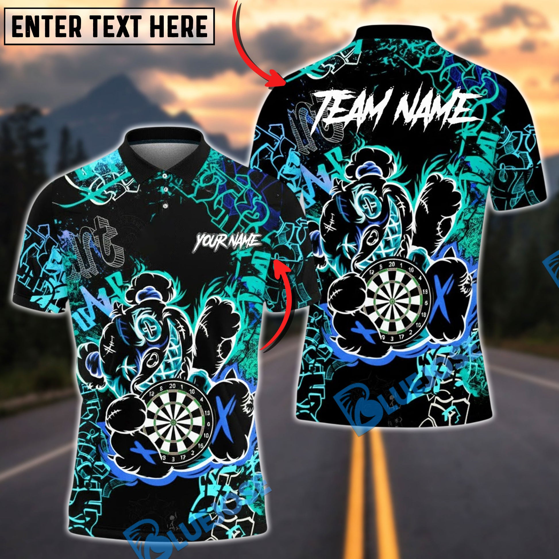 BlueJose Darts Graffiti Bear Dartboard Neon Splash Multicolor Options Personalized Name Shirt (4 Colors)