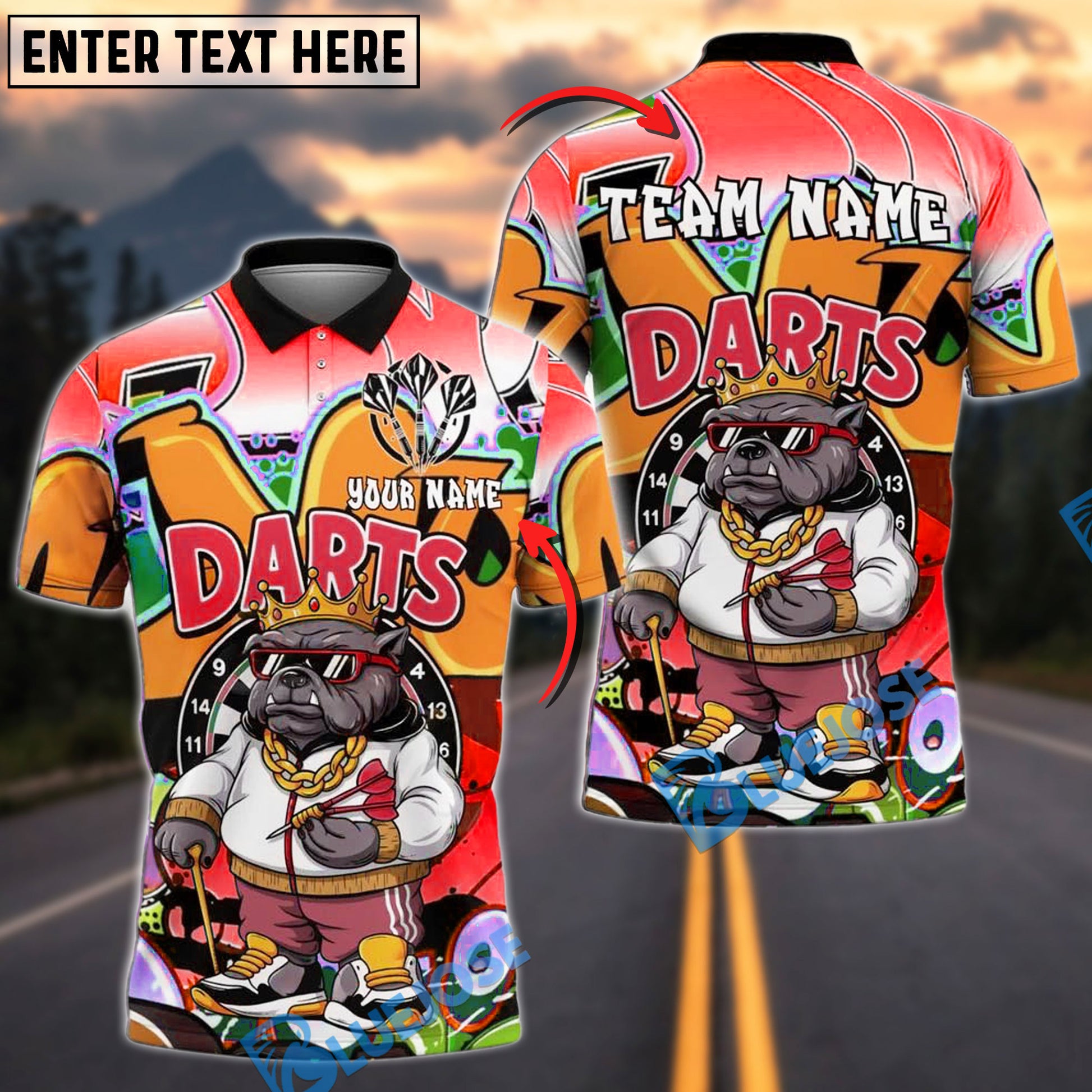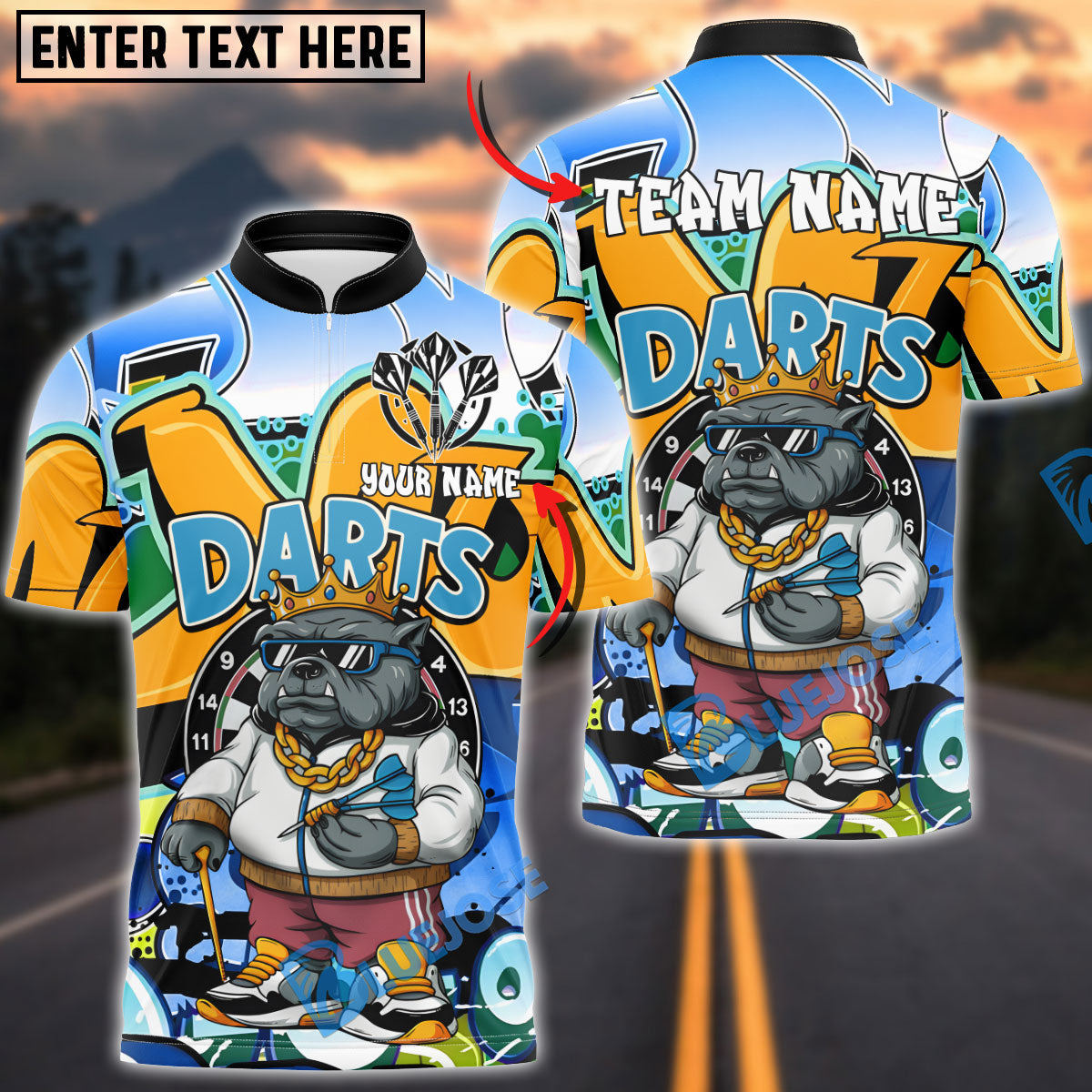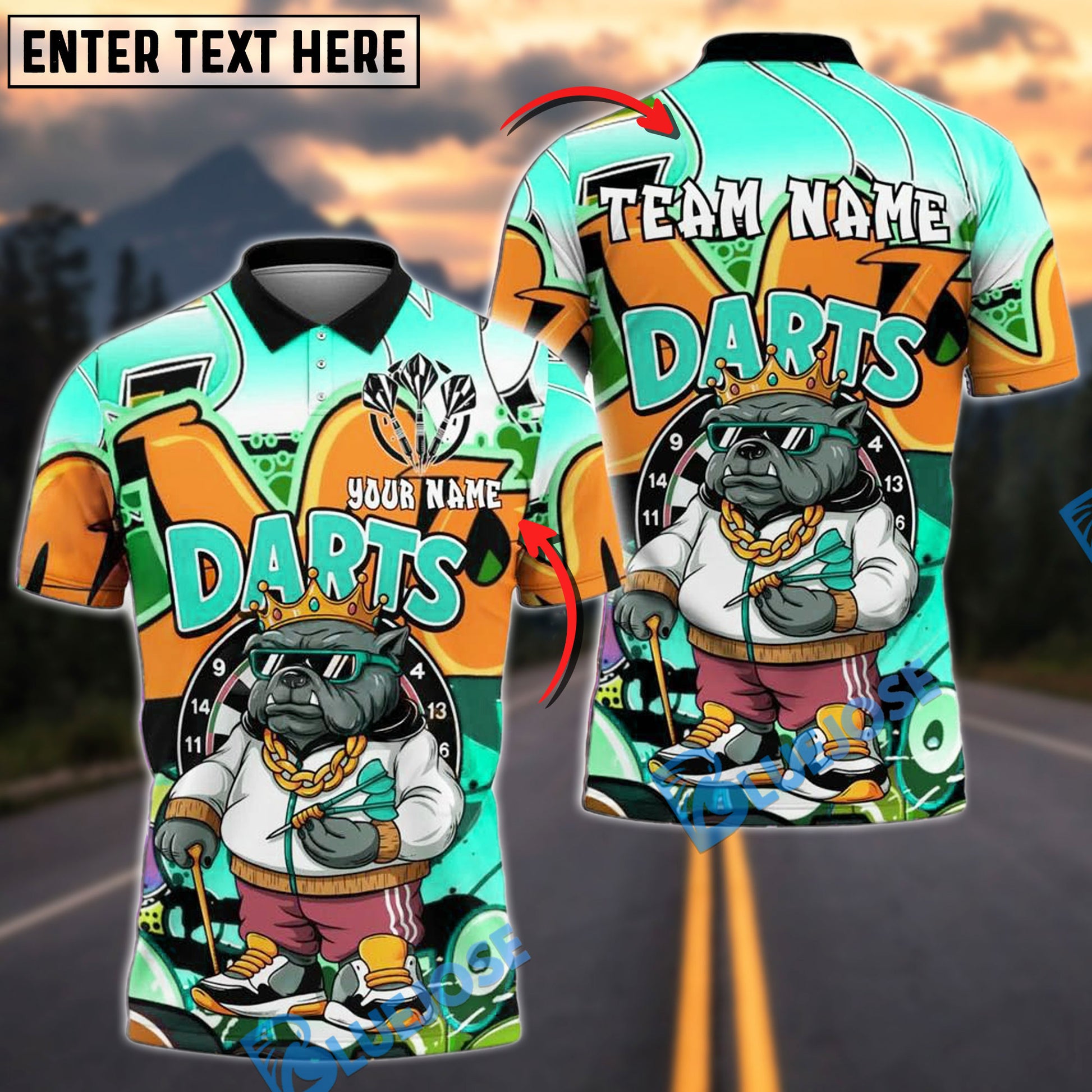 BlueJose Darts Graffiti Bulldog King Style Personalized Name, Team Name Shirt (4 Colors)