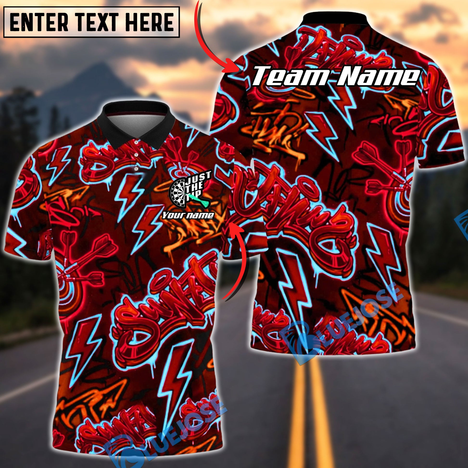 BlueJose Darts Graffiti Neon Lightning Style Multicolor Options Personalized Name Shirt (4 Colors)