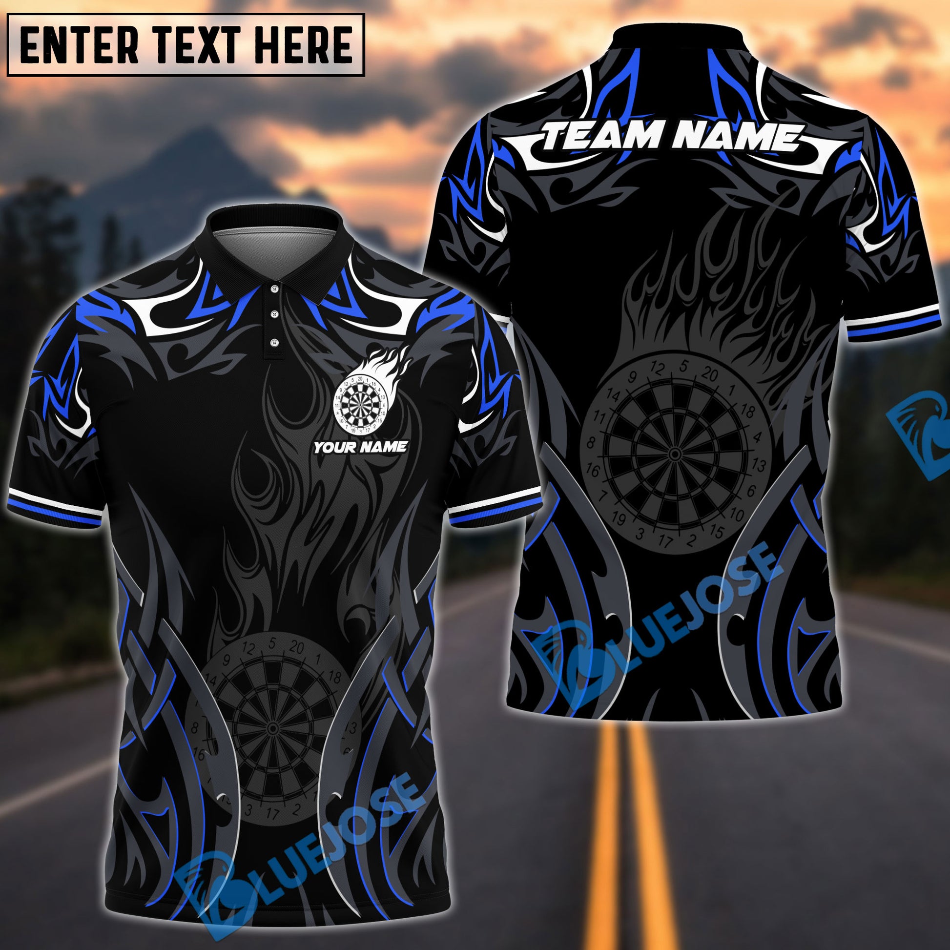 BlueJose Darts Gray Flame Personalized Name, Team Name Shirt (4 Colors)
