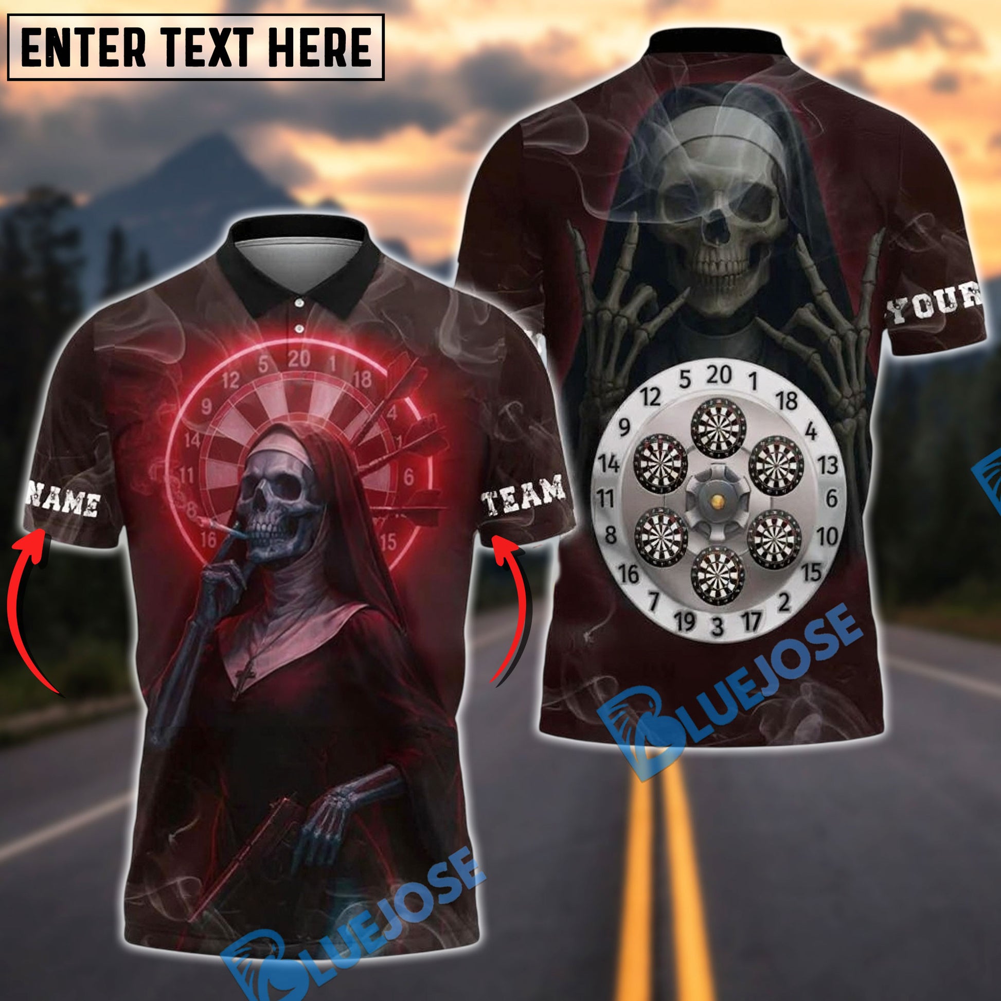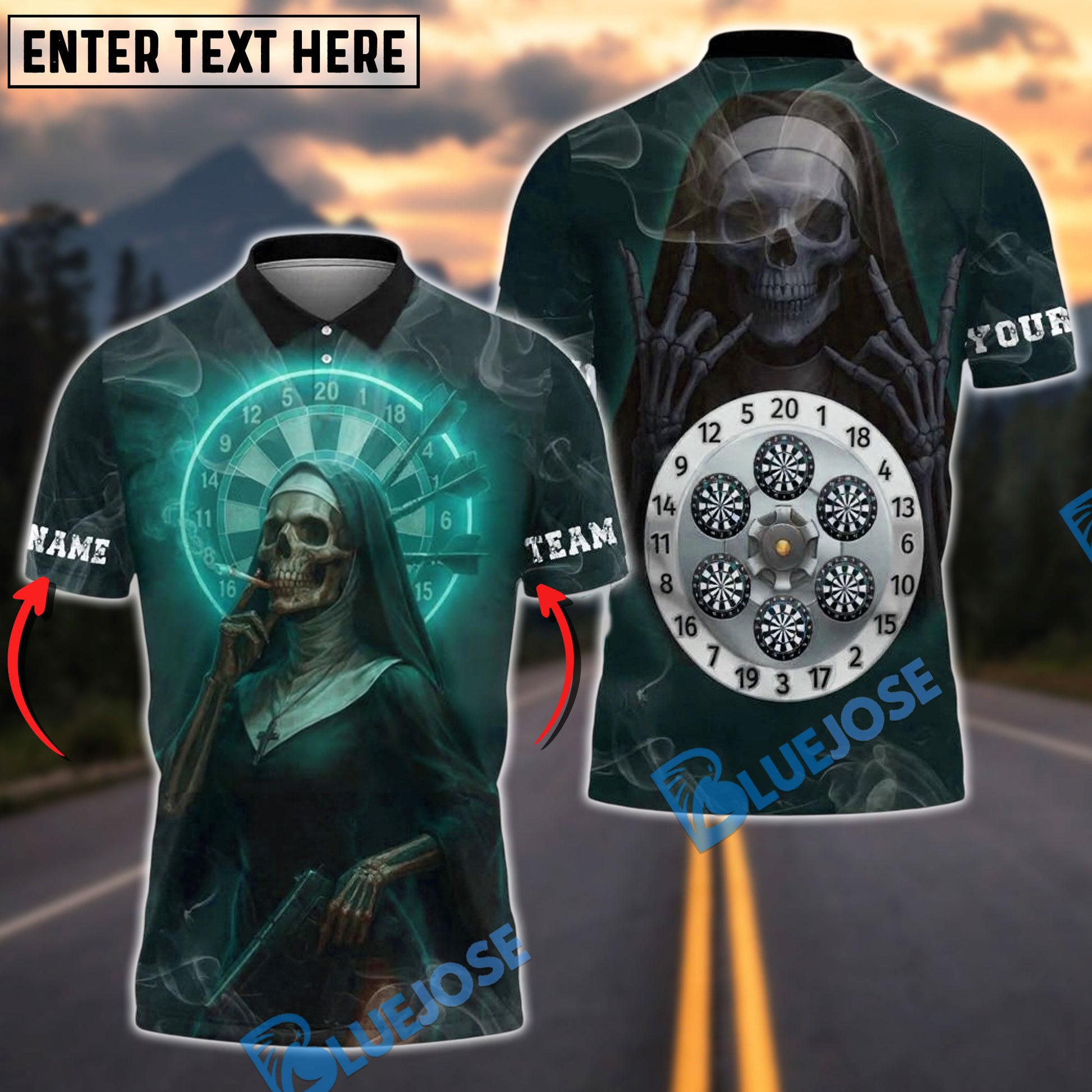 BlueJose Darts Grim Reaper Nun Customized Name, Team Name 3D Shirt (4 Colors)