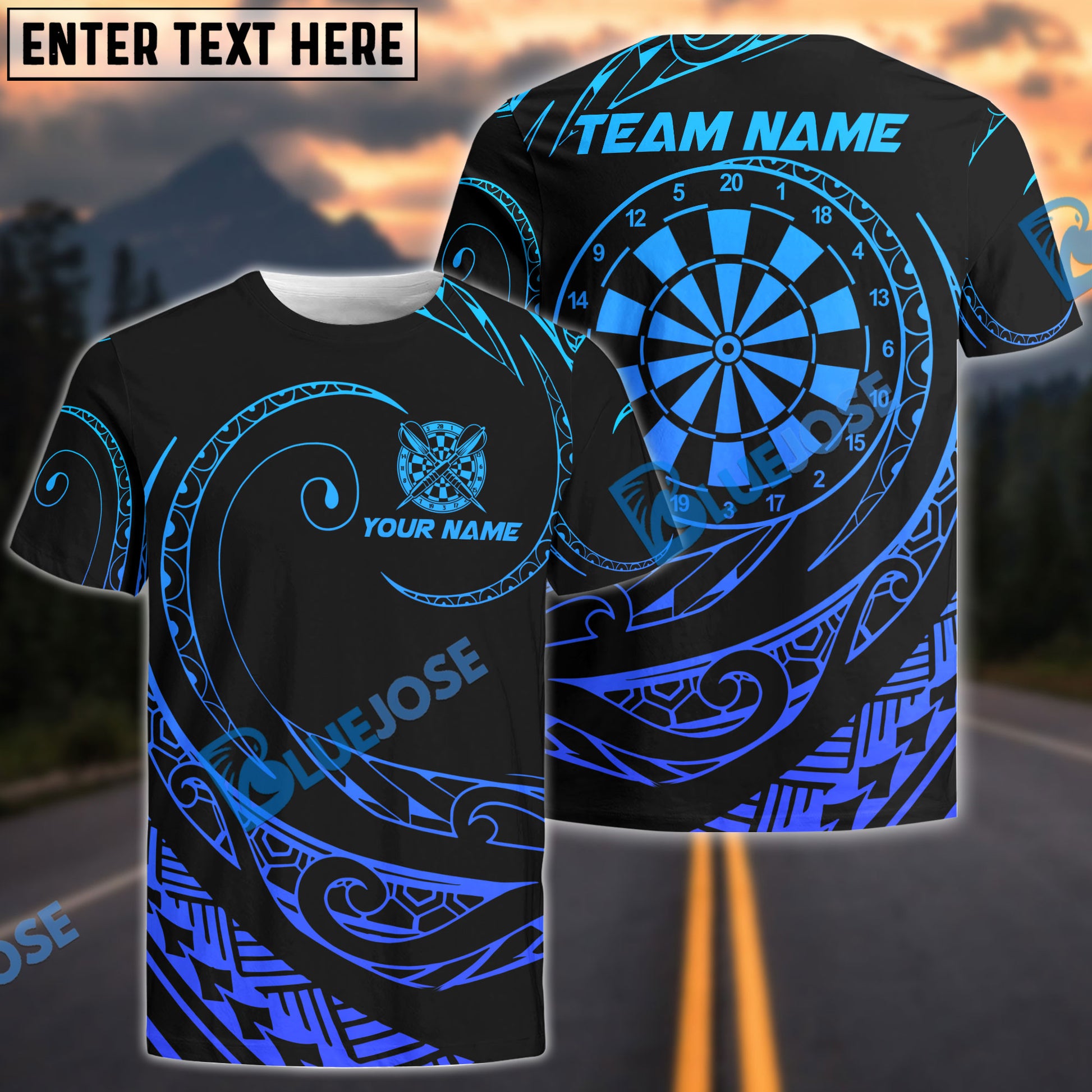 BlueJose Darts Hawaii Polynesian Personalized Name, Team Name Shirt (4 Colors)