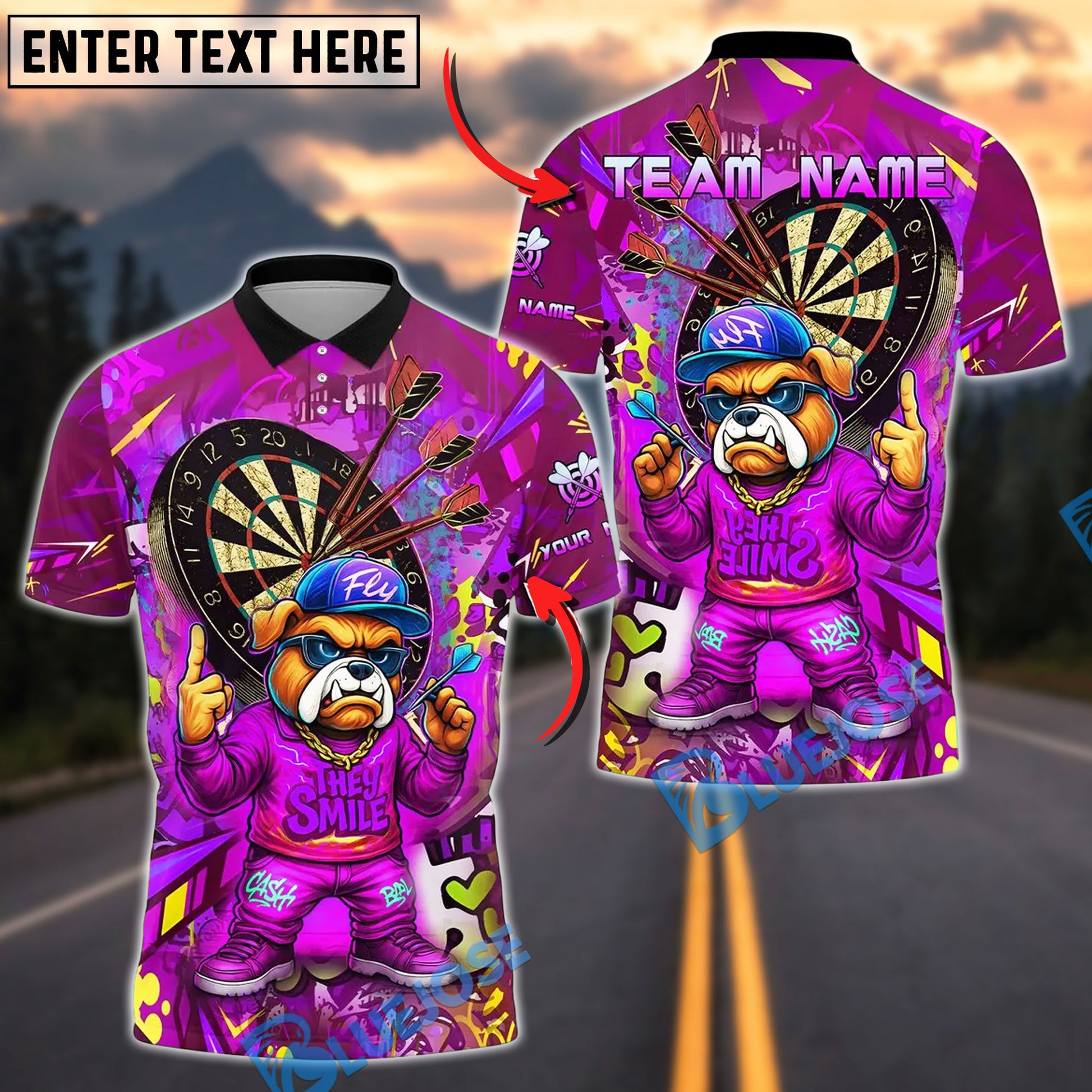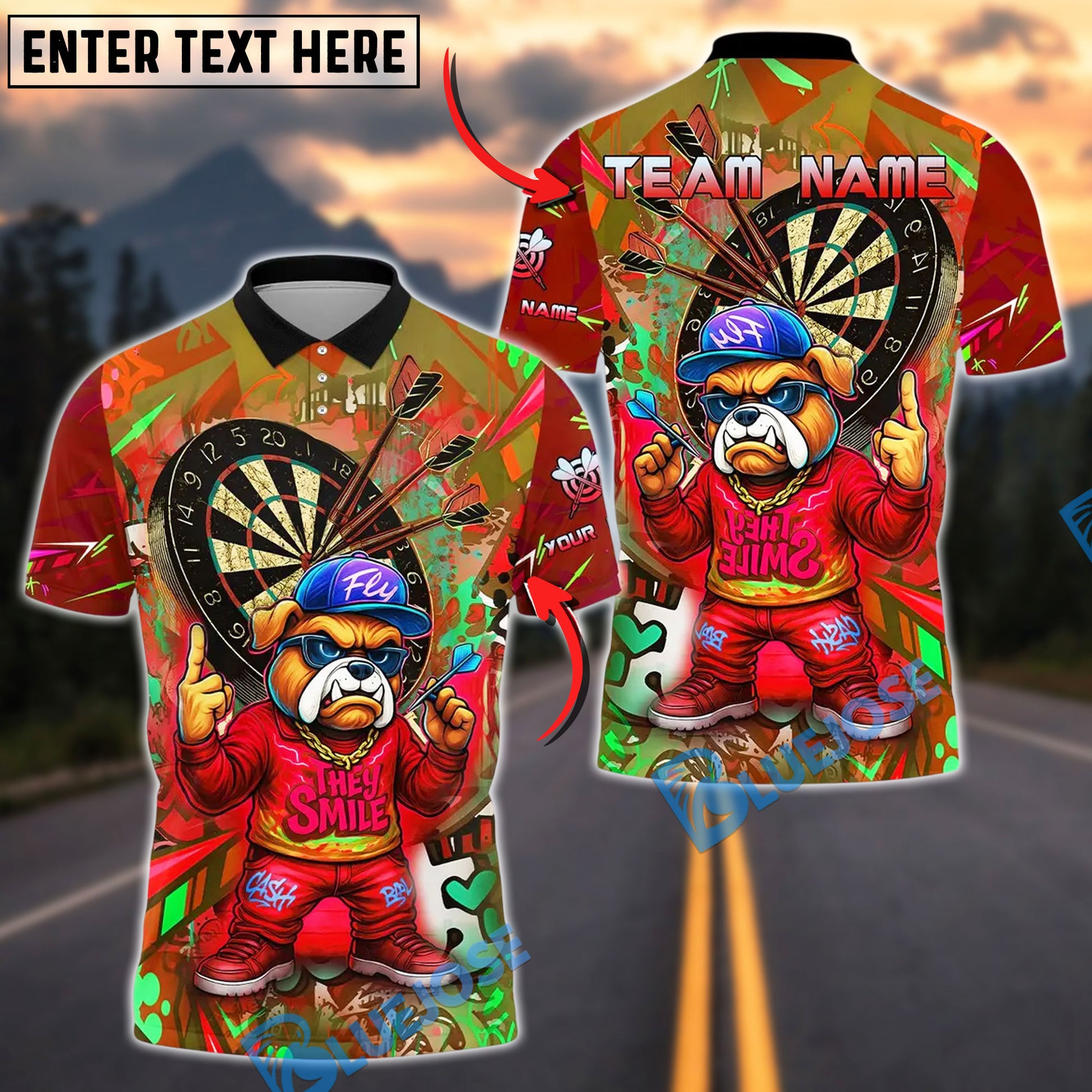 BlueJose Darts Hiphop Bulldog With Dartboard Design Customized Name, Team Name 3D Shirt (4 Colors)