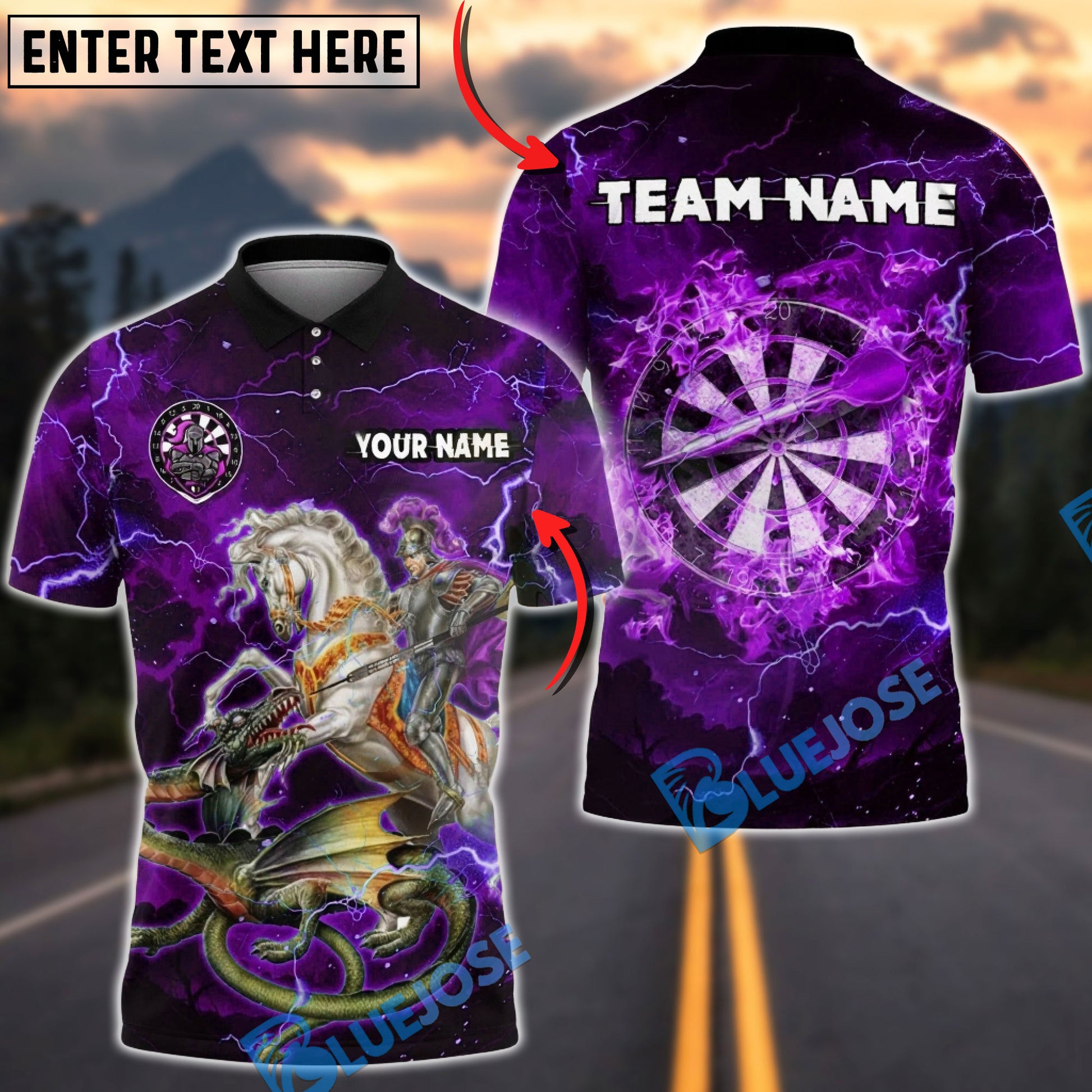 BlueJose Darts Knight Slaying Dragon Multicolor Options Personalized Name Shirt (4 Colors)