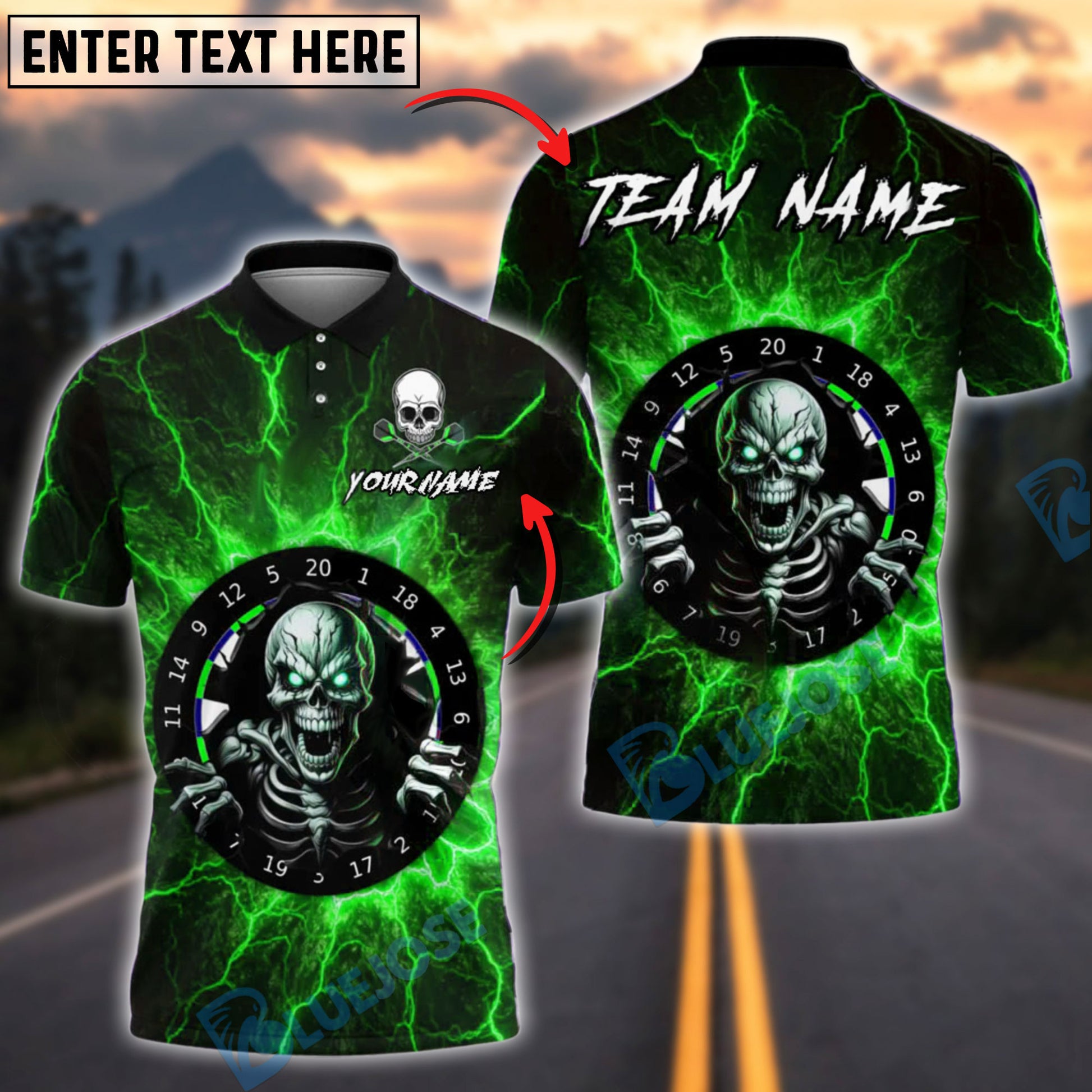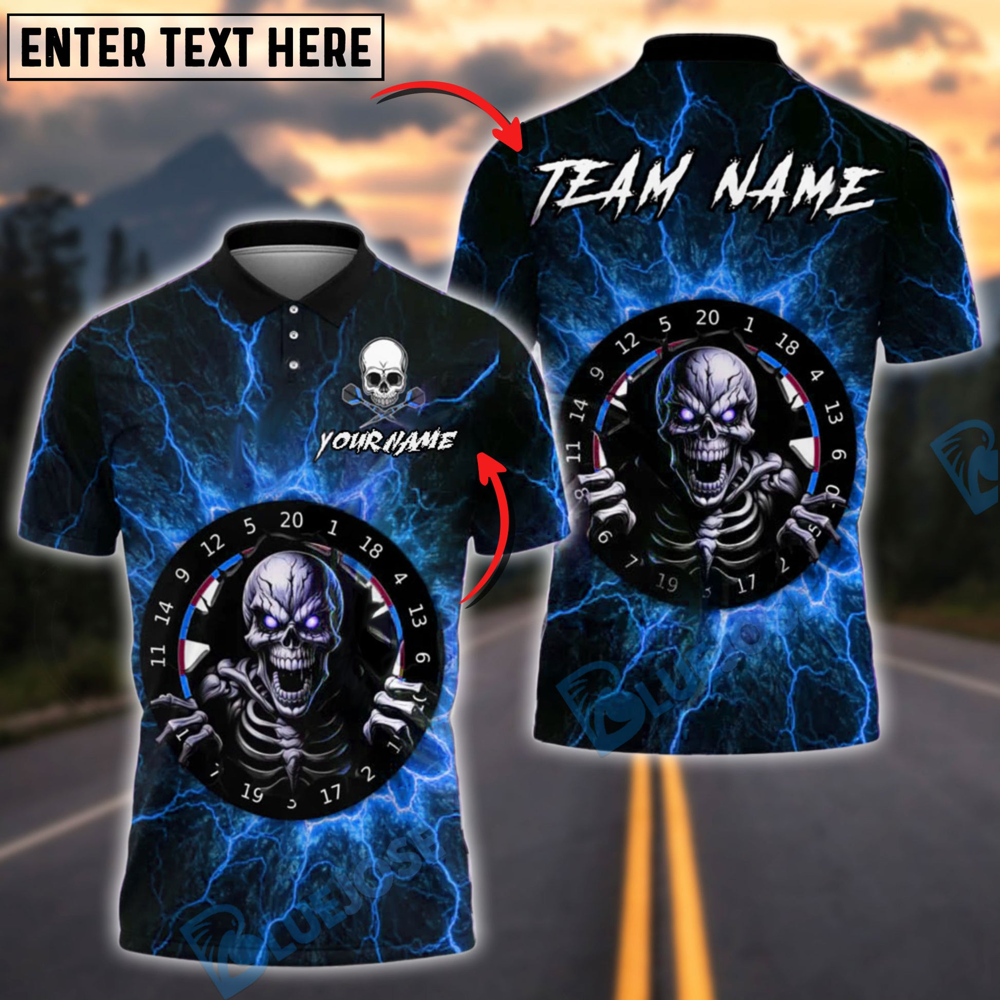 BlueJose Darts Lightning Evil Skull Board Customized Name, Team Name 3D Shirt (4 Colors)