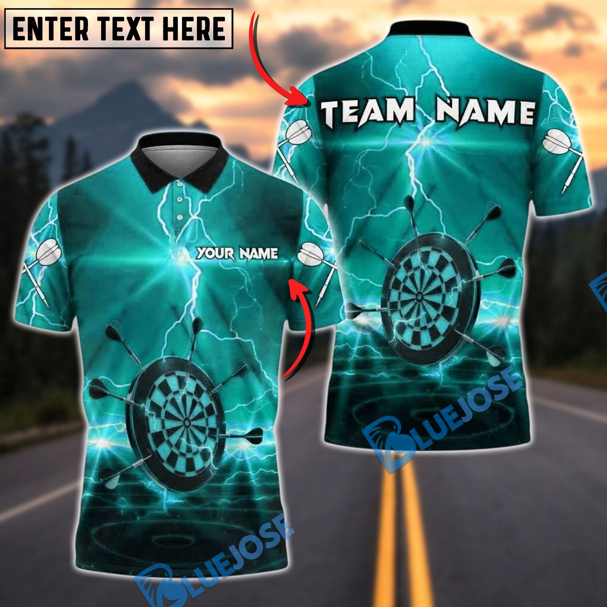 BlueJose Darts Lightning Glow Storm Personalized Name, Team Name Unisex Shirt (4 Colors)