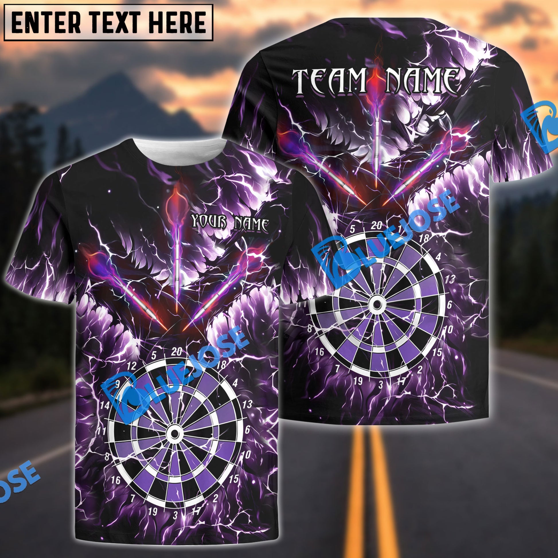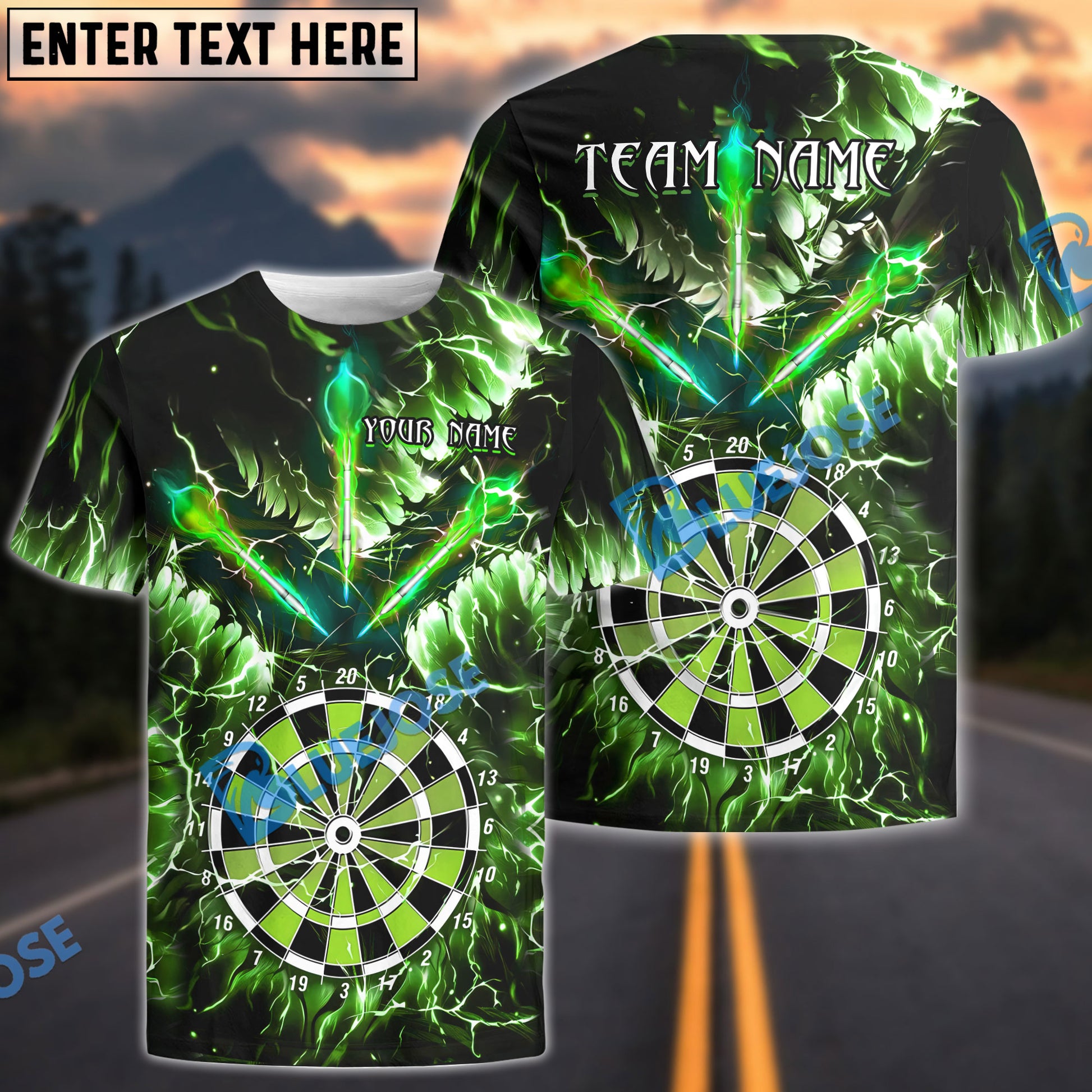 BlueJose Darts Lightning Smoke Fire Style Personalized Name, Team Name Unisex Shirt ( 4 Colors )