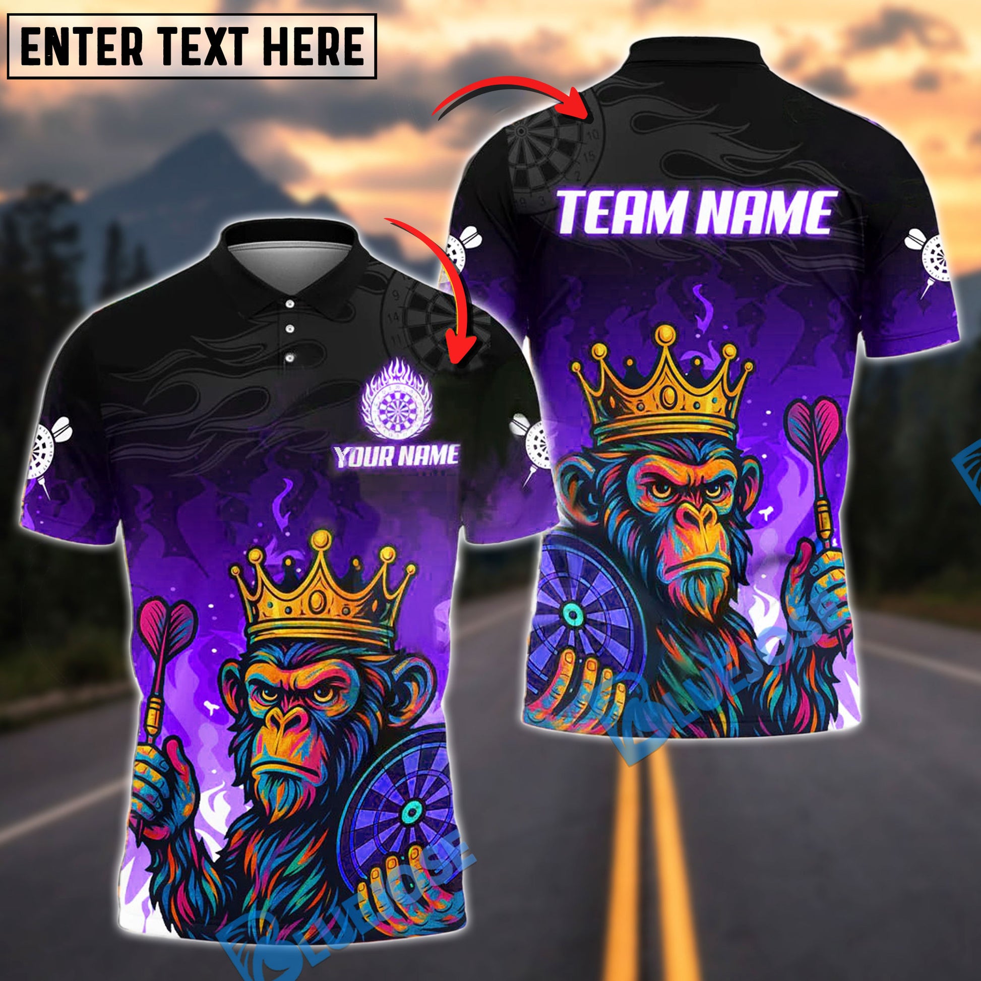 BlueJose Darts Monkey King Warrior Customized Name, Team Name 3D Shirt (4 Colors)