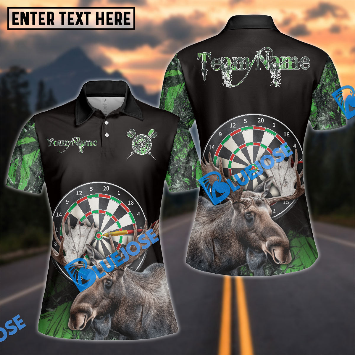 BlueJose Darts Moose Hunting Camo Multicolor Options Personalized Name Shirt For Women (4 Colors)