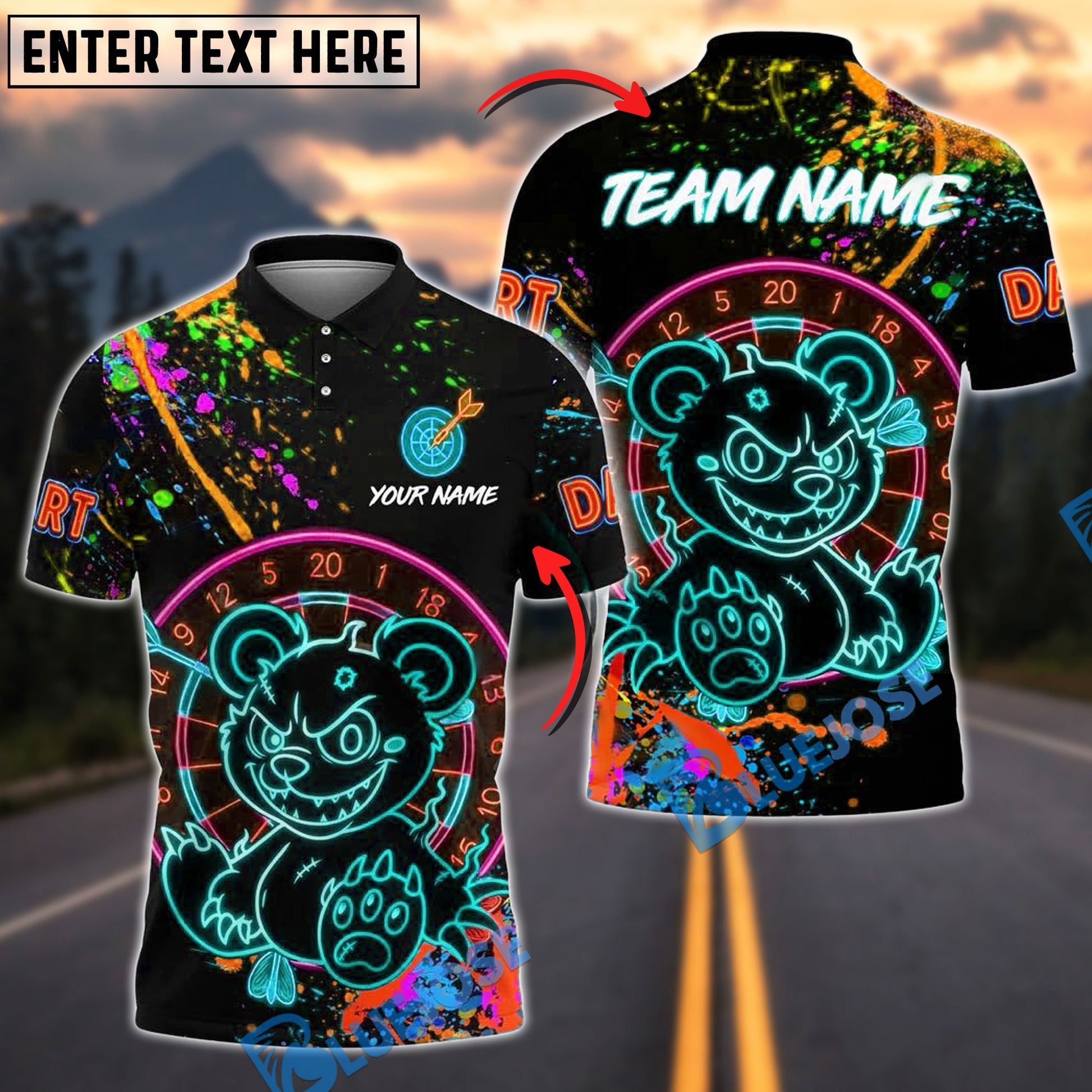 BlueJose Darts Neon Bear Glow Art Personalized Name, Team Name Shirt (4 Colors)