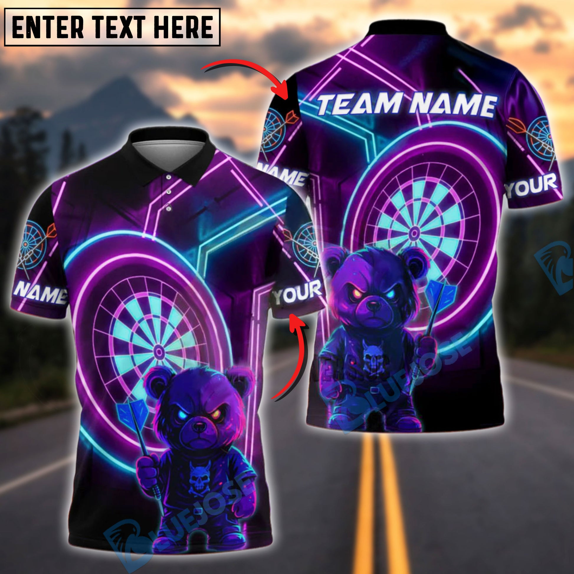 BlueJose Darts Neon Dark Teddy Bear Customized Name, Team Name 3D Shirt (4 Colors)