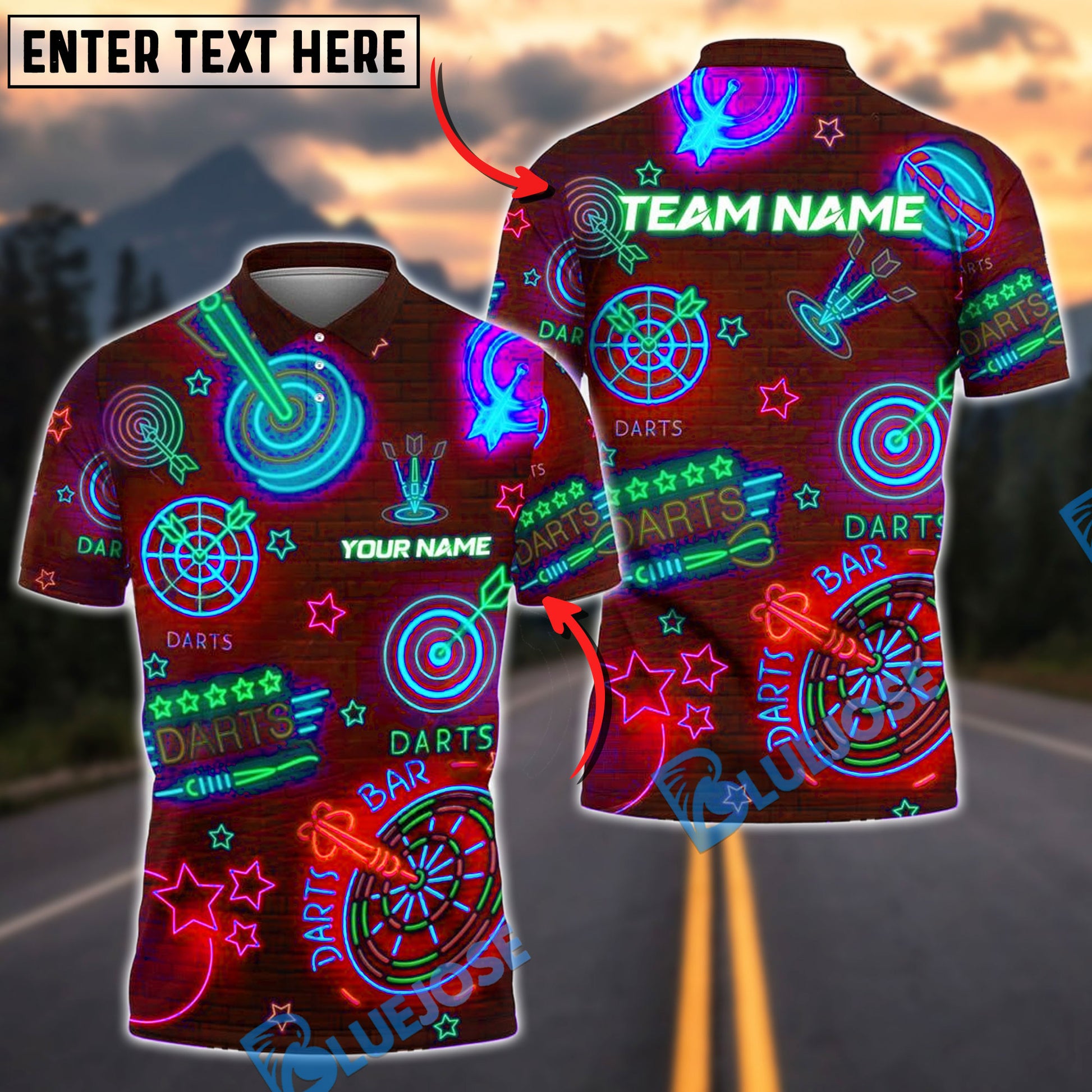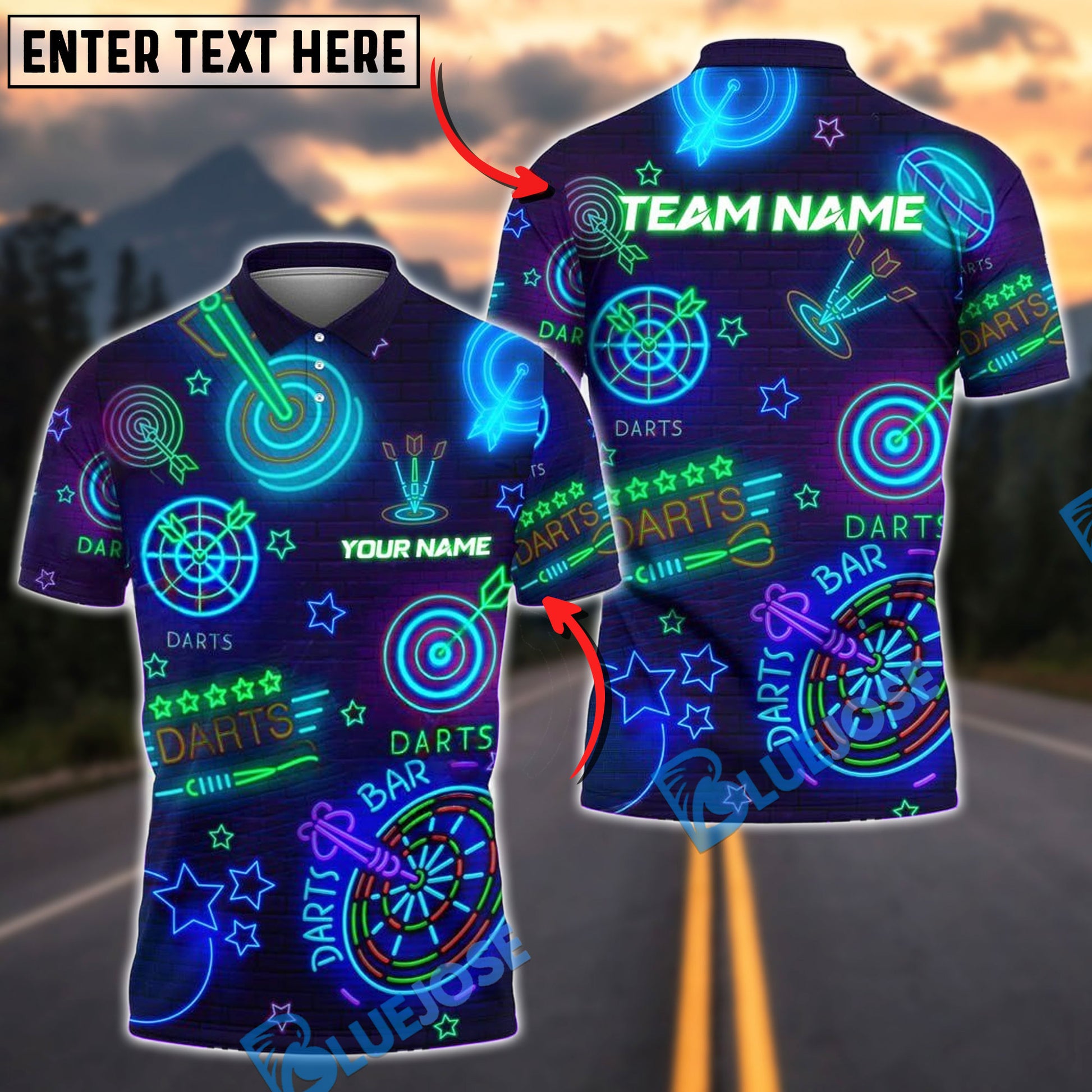 BlueJose Darts Neon Dart Bar Personalized Name, Team Name Shirt (4 Colors)