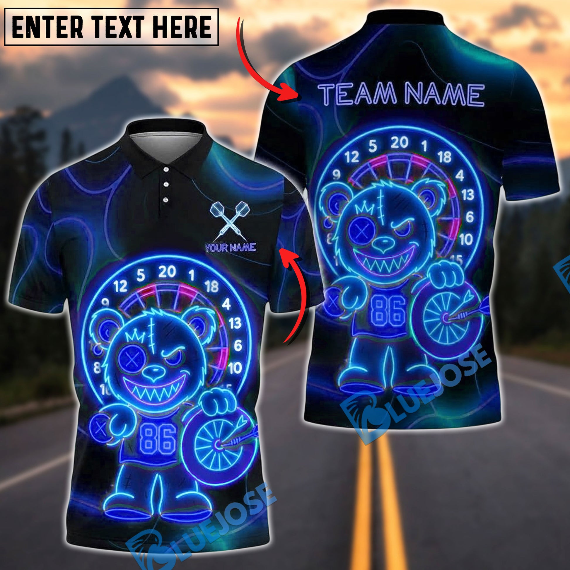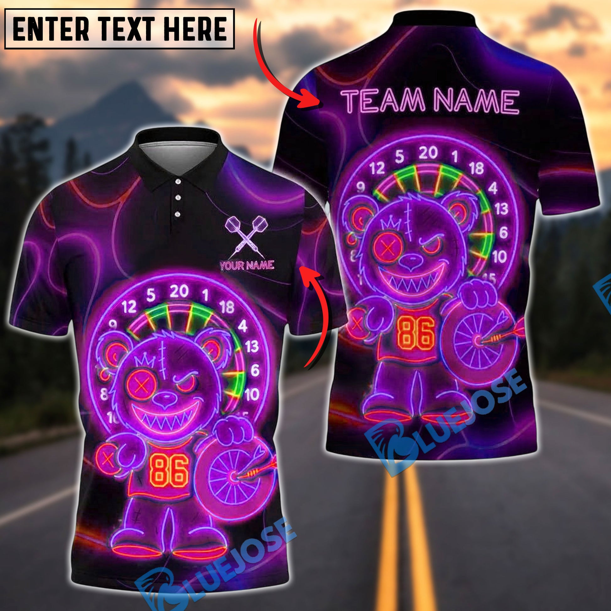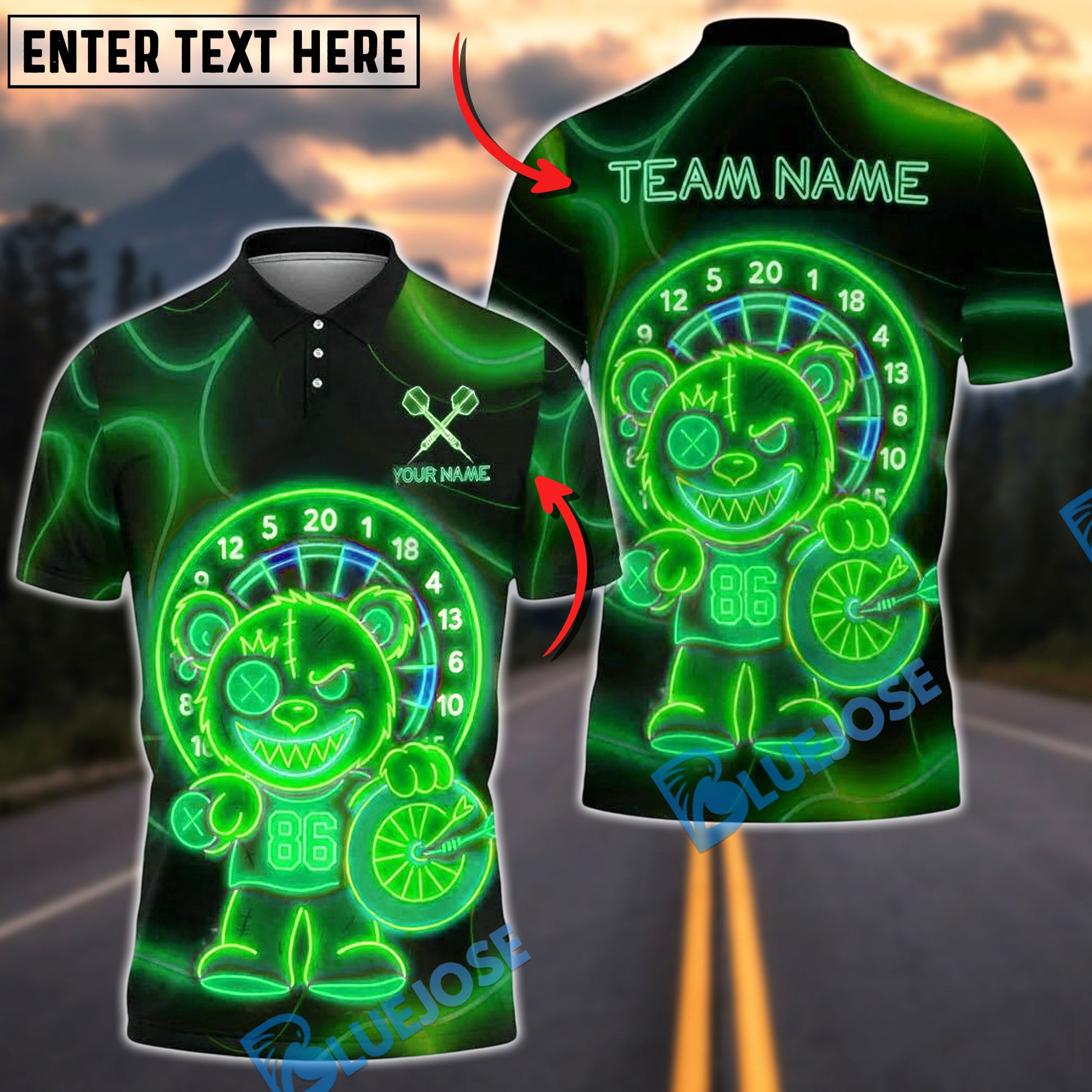 BlueJose Darts Neon Dartboard Bear Holding Darts Customized Name, Team Name 3D Shirt (4 Colors)