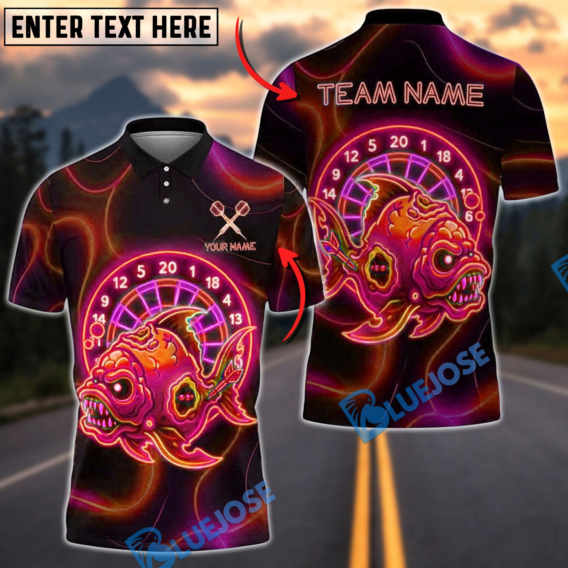 BlueJose Darts Neon Dartboard Zombie Fish Customized Name, Team Name 3D Shirt (4 Colors)