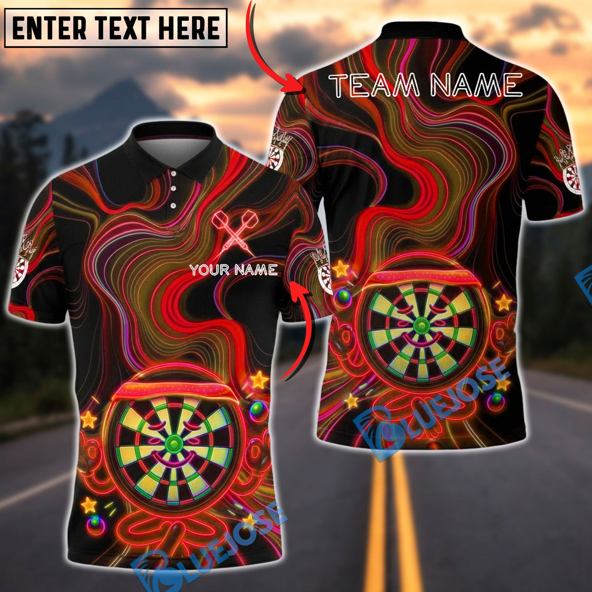 BlueJose Darts Neon Happy Dartboard Character Star Glow Multicolor Options Personalized Name Shirt (4 Colors)