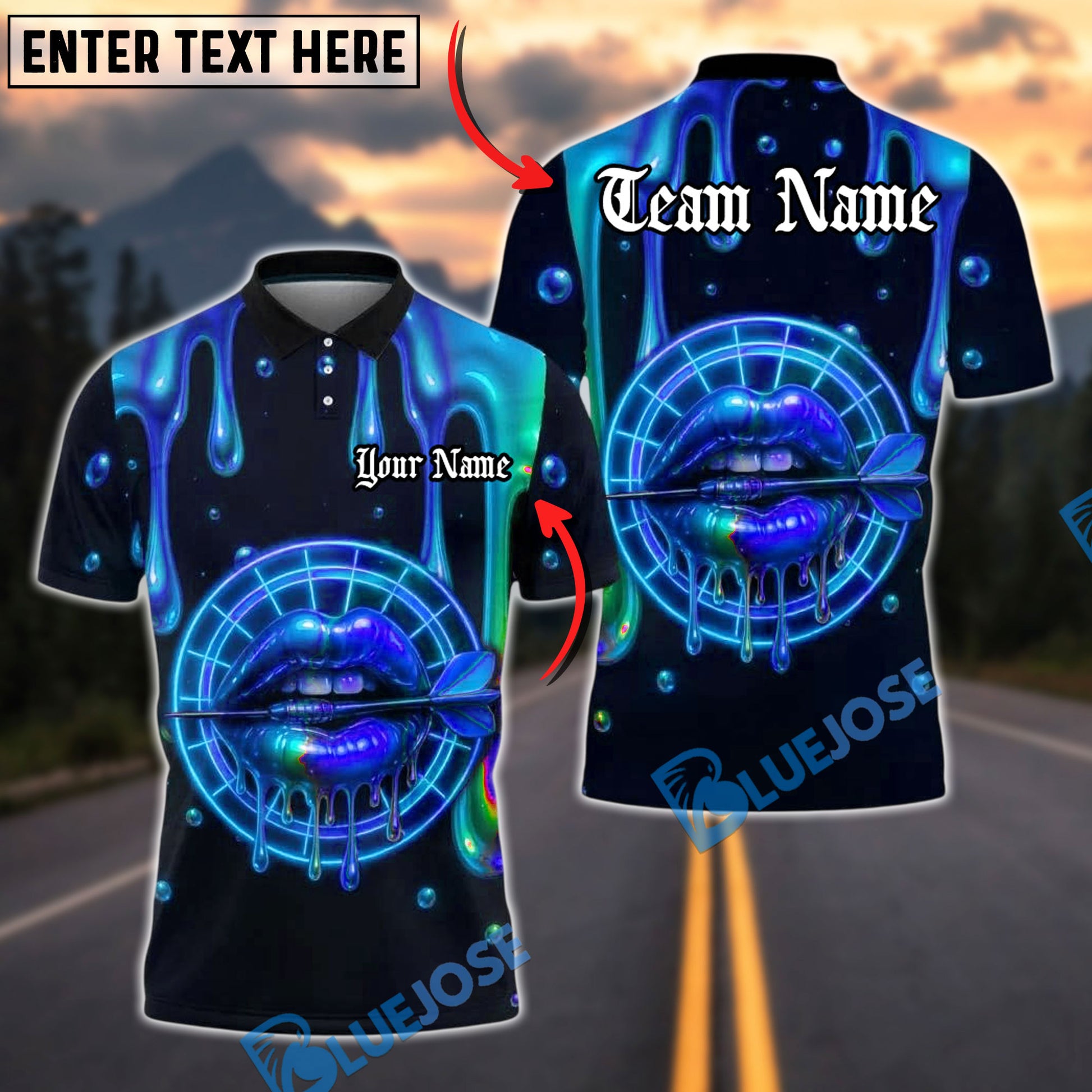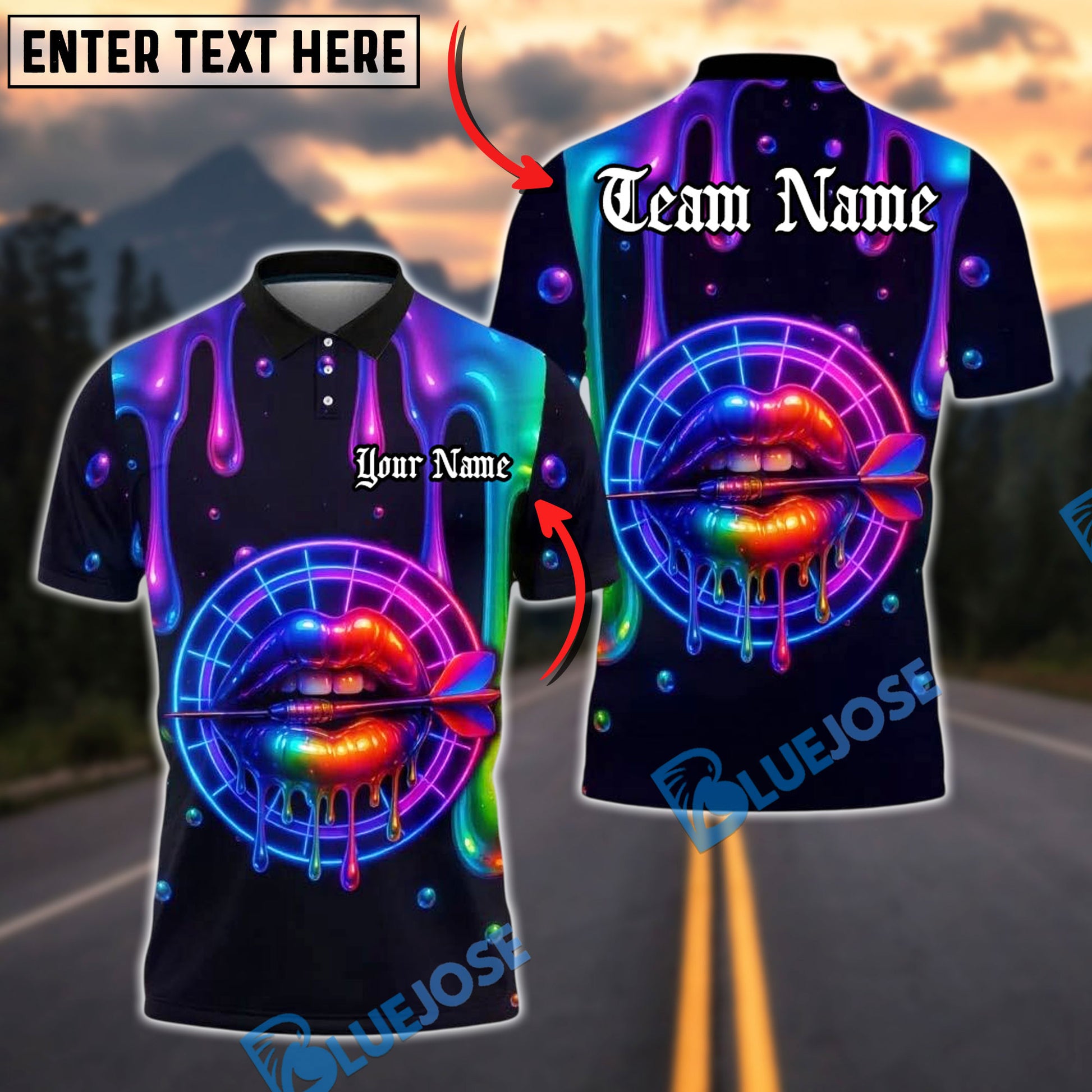 BlueJose Darts Neon Lips Dripping Dartboard Glow Personalized Name, Team Name Unisex Shirt (4 Colors)