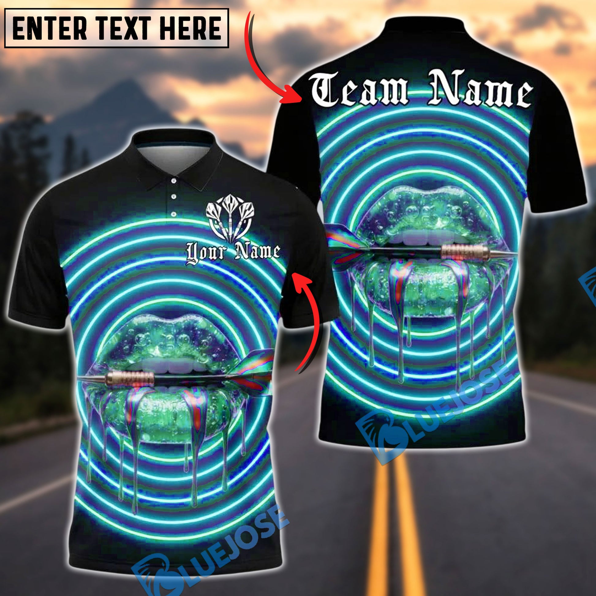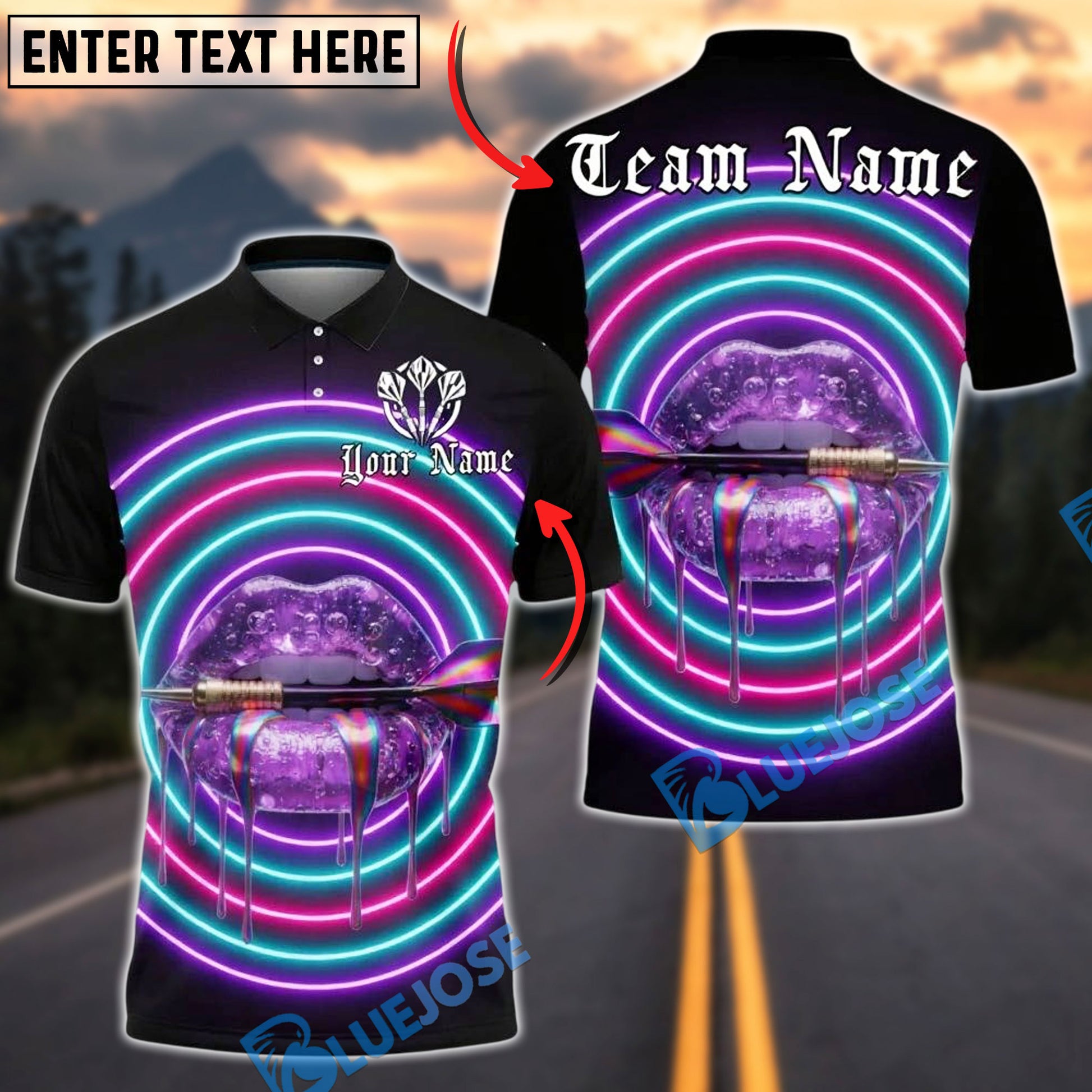 BlueJose Darts Neon Lips Ice Glow Personalized Name, Team Name Unisex Shirt (4 Colors)