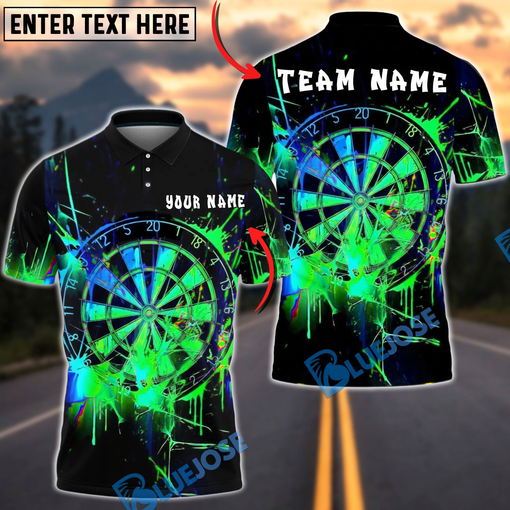 BlueJose Darts Neon Splash Impact Style Multicolor Options Personalized Name Shirt (4 Colors)