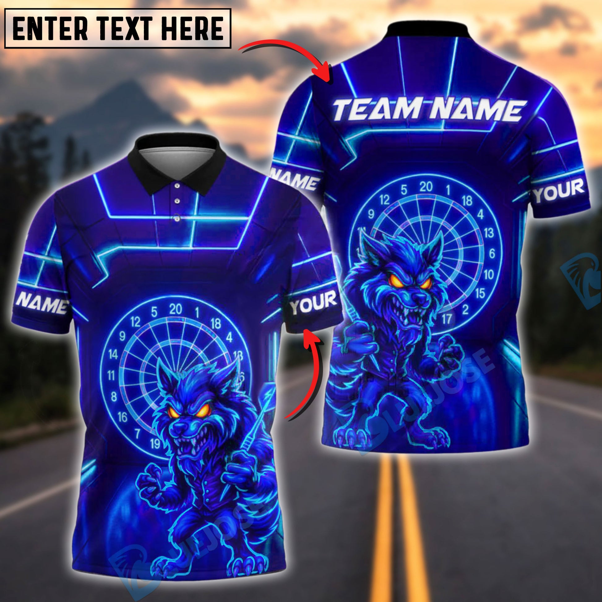 BlueJose Darts Neon Wolf Customized Name, Team Name 3D Shirt (4 Colors)