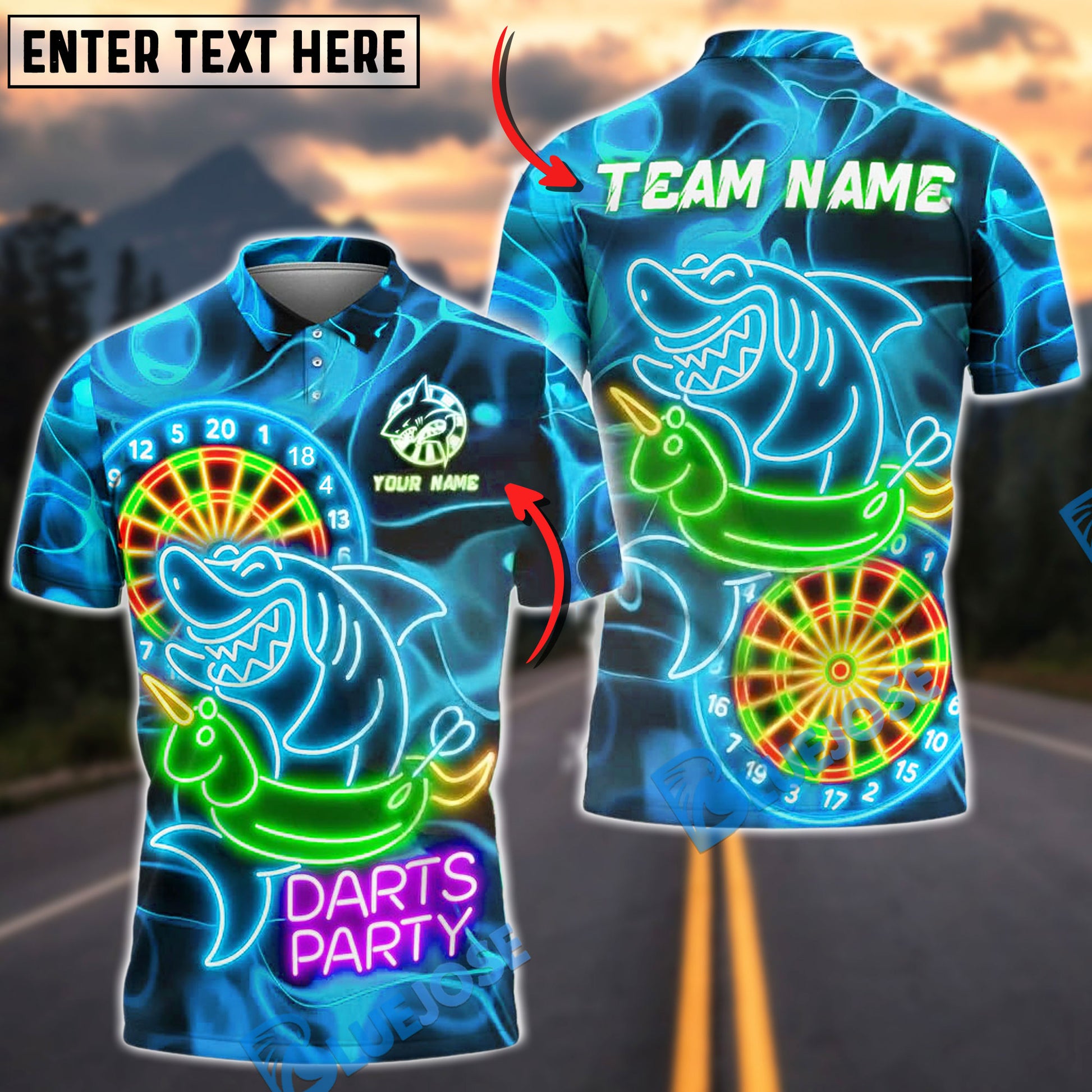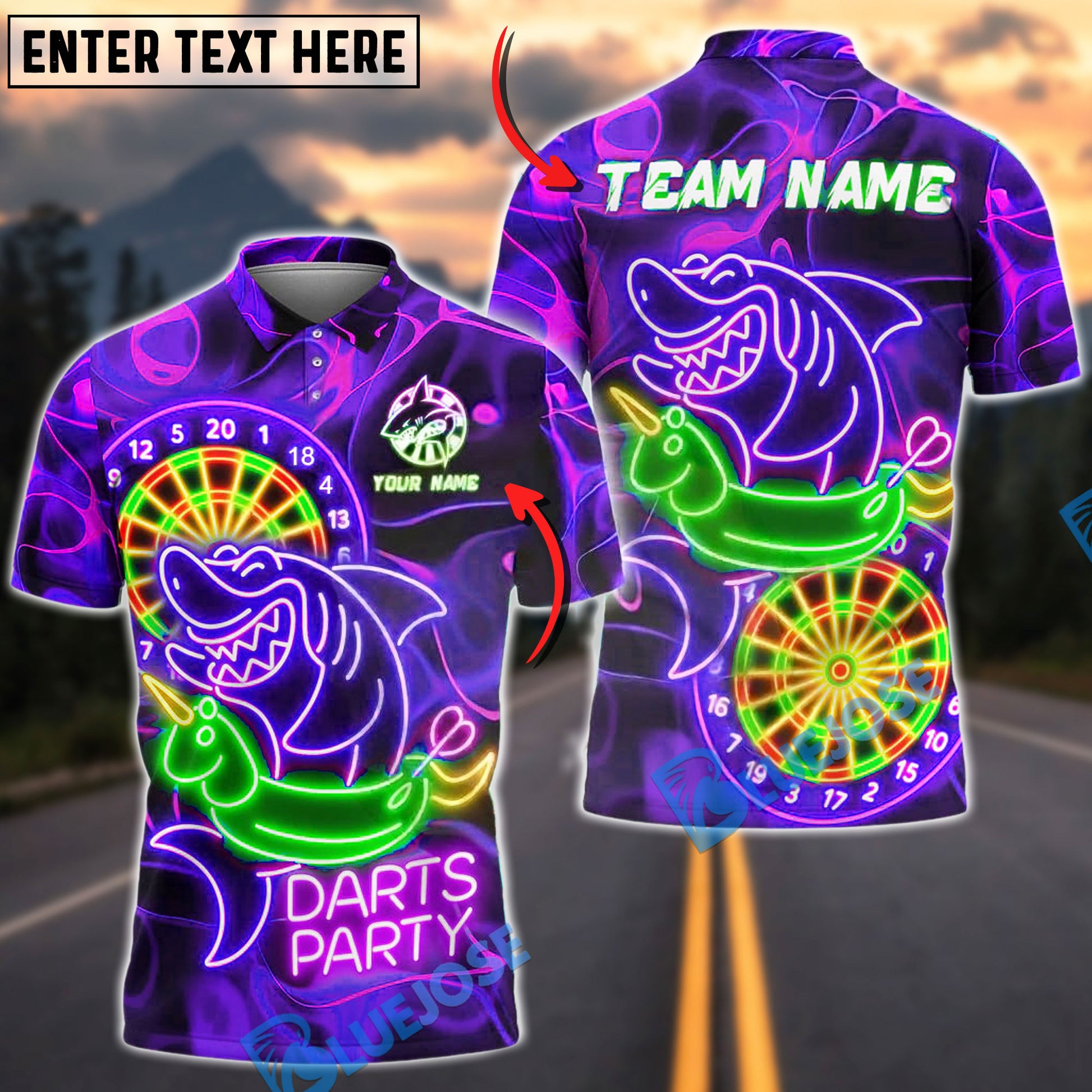 BlueJose Darts Party Shark Inflatable Neon Customized Name, Team Name 3D Shirt (4 Colors)