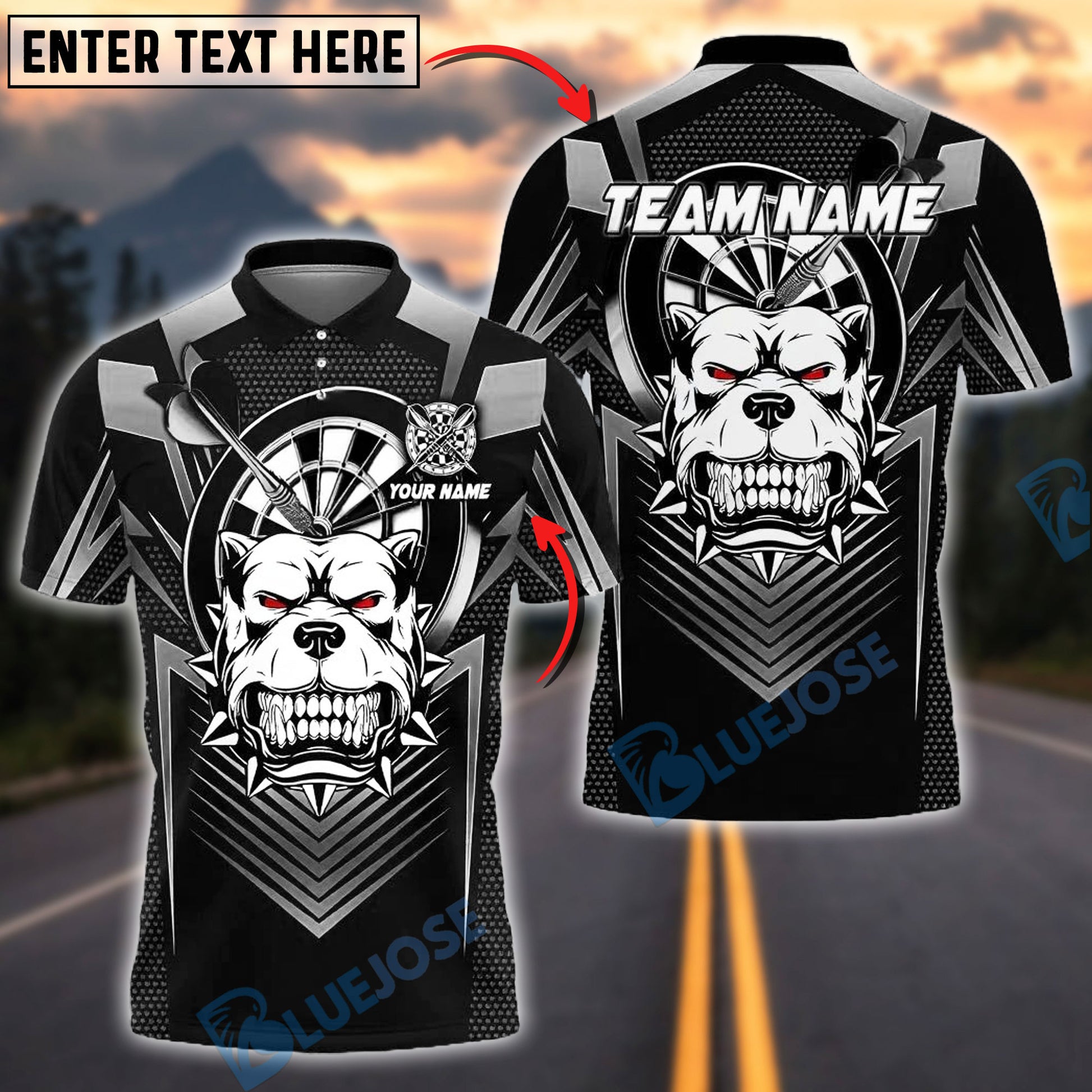 BlueJose Darts Pitbull Design Line Black Style Customized Name, Team Name 3D Shirt (4 Colors)