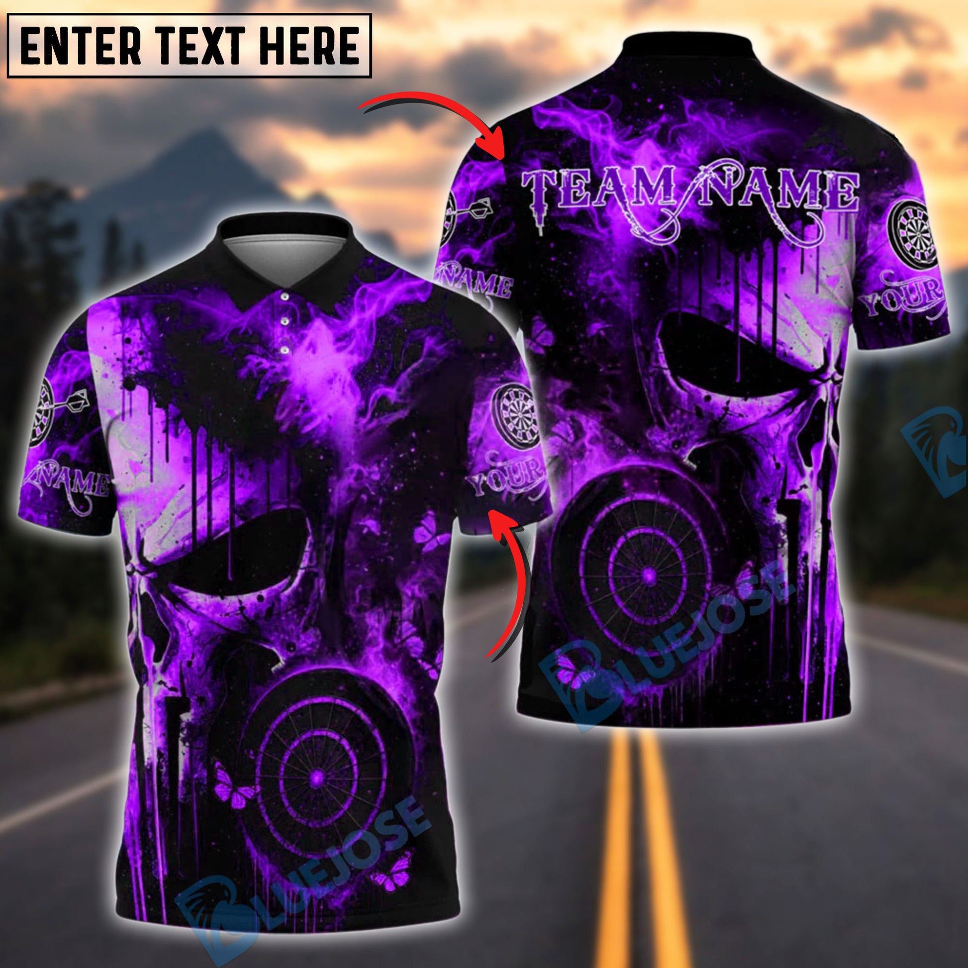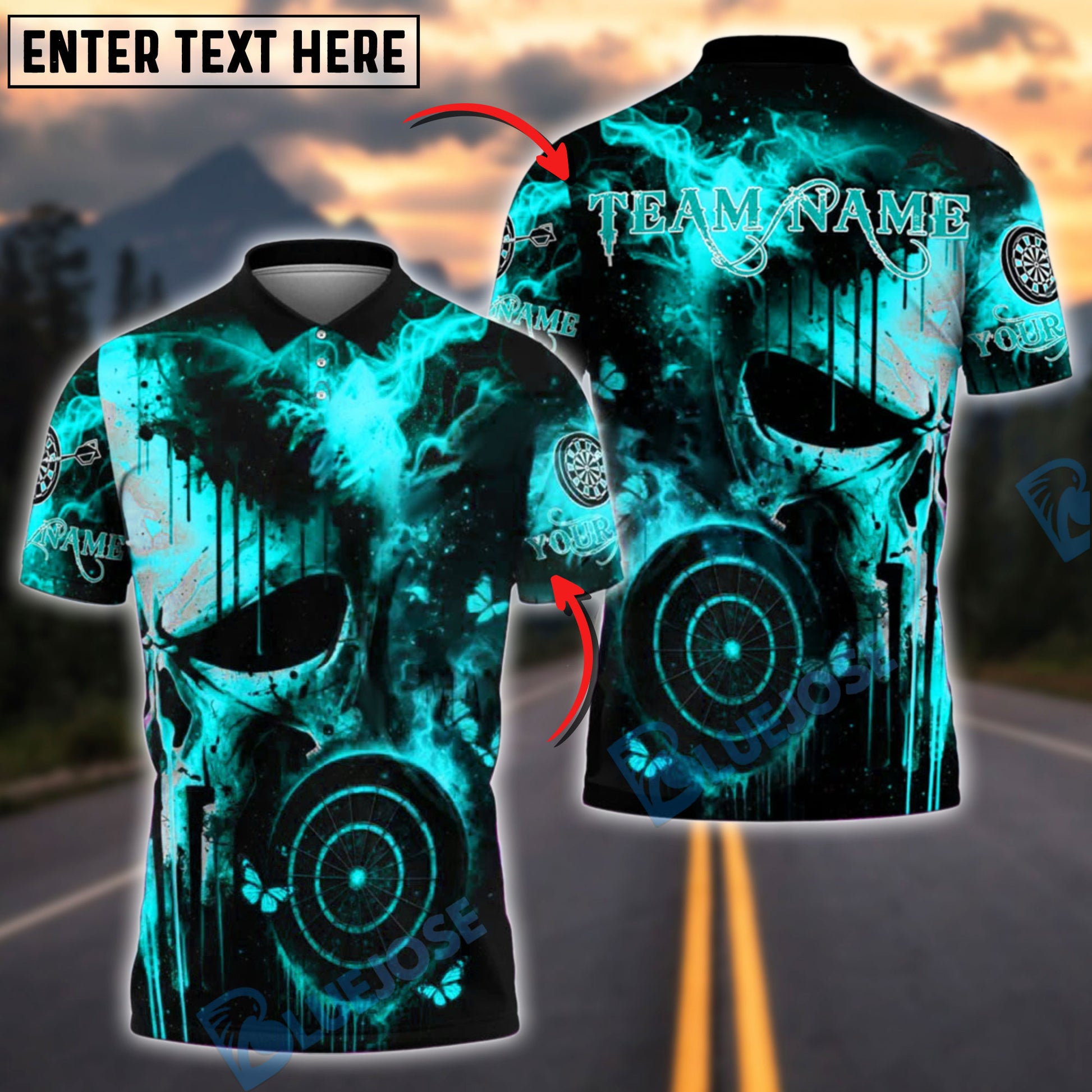 BlueJose Darts Punisher Skull Fire Flames Customized Name, Team Name 3D Shirt (4 Colors)