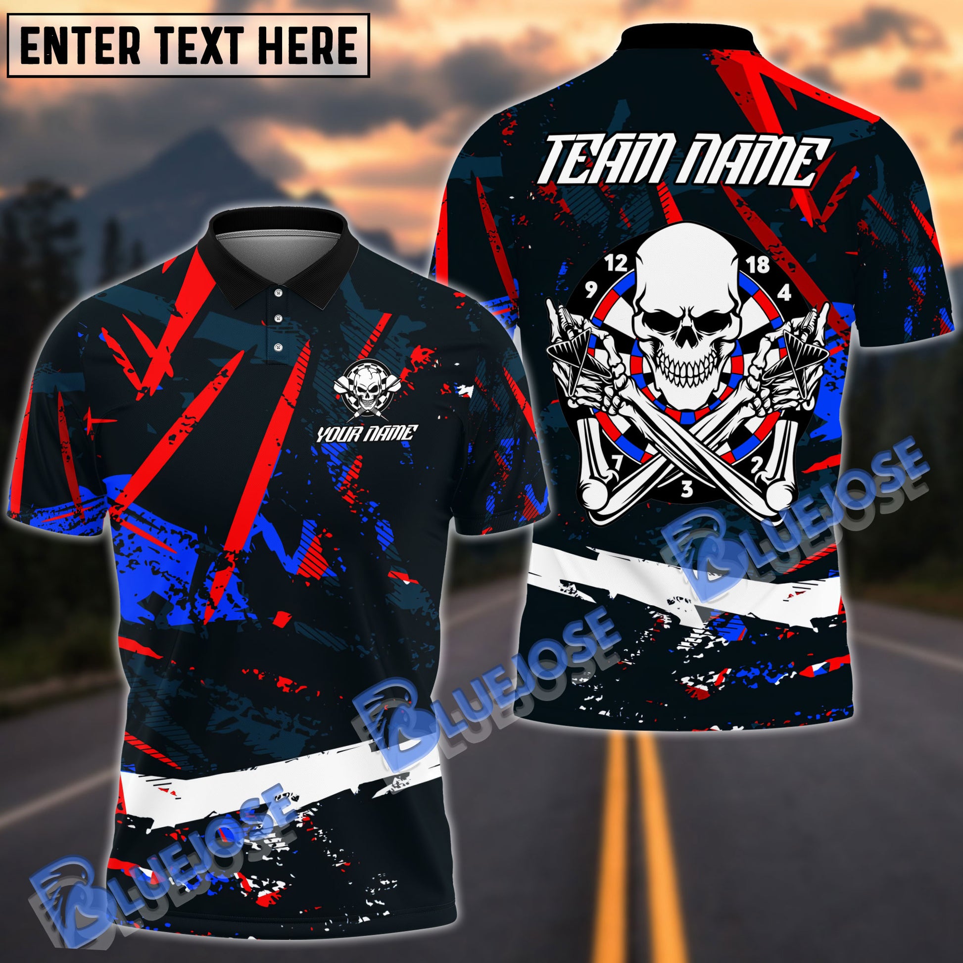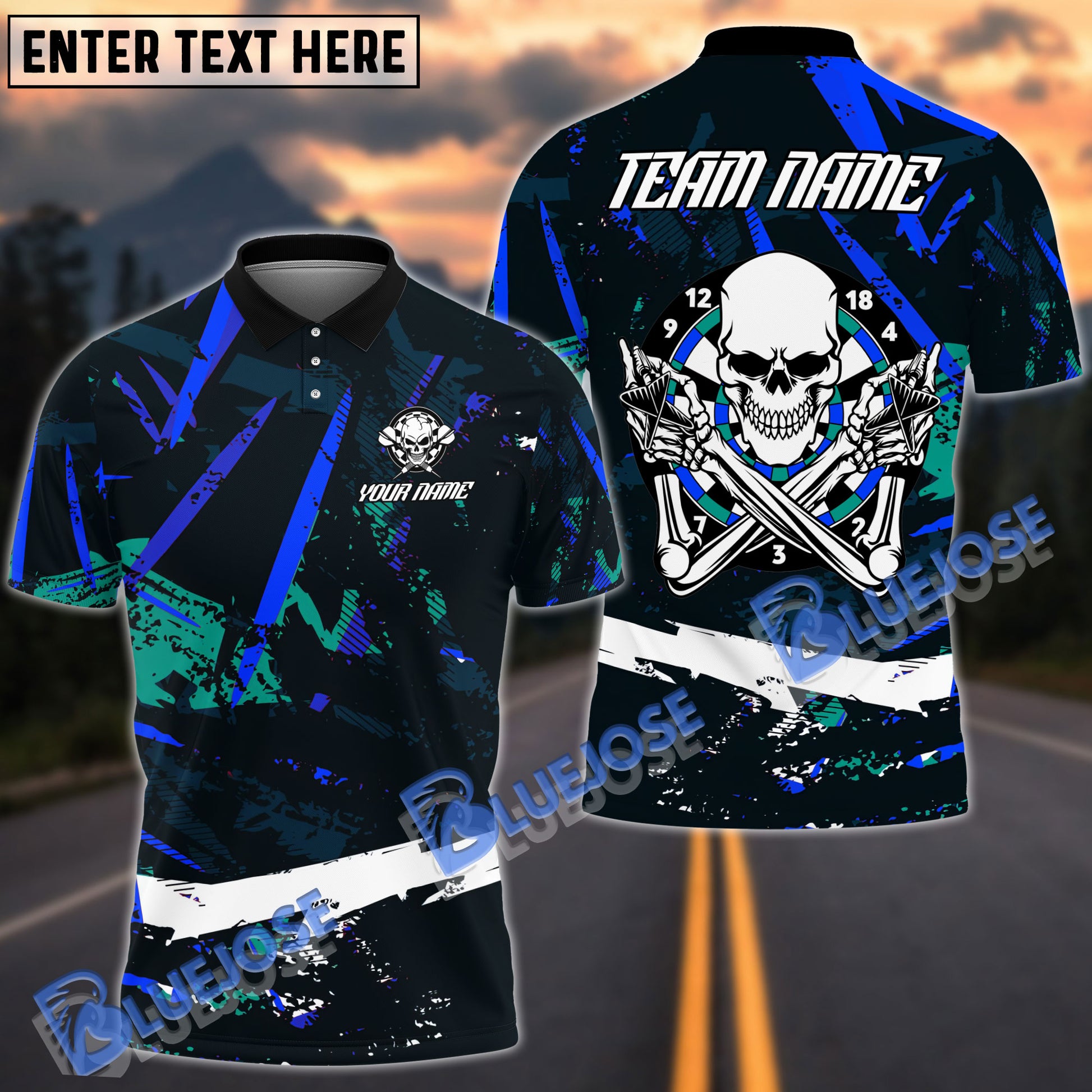 BlueJose Darts Skull Racing Style Personalized Name, Team Name Shirt (4 Colors)