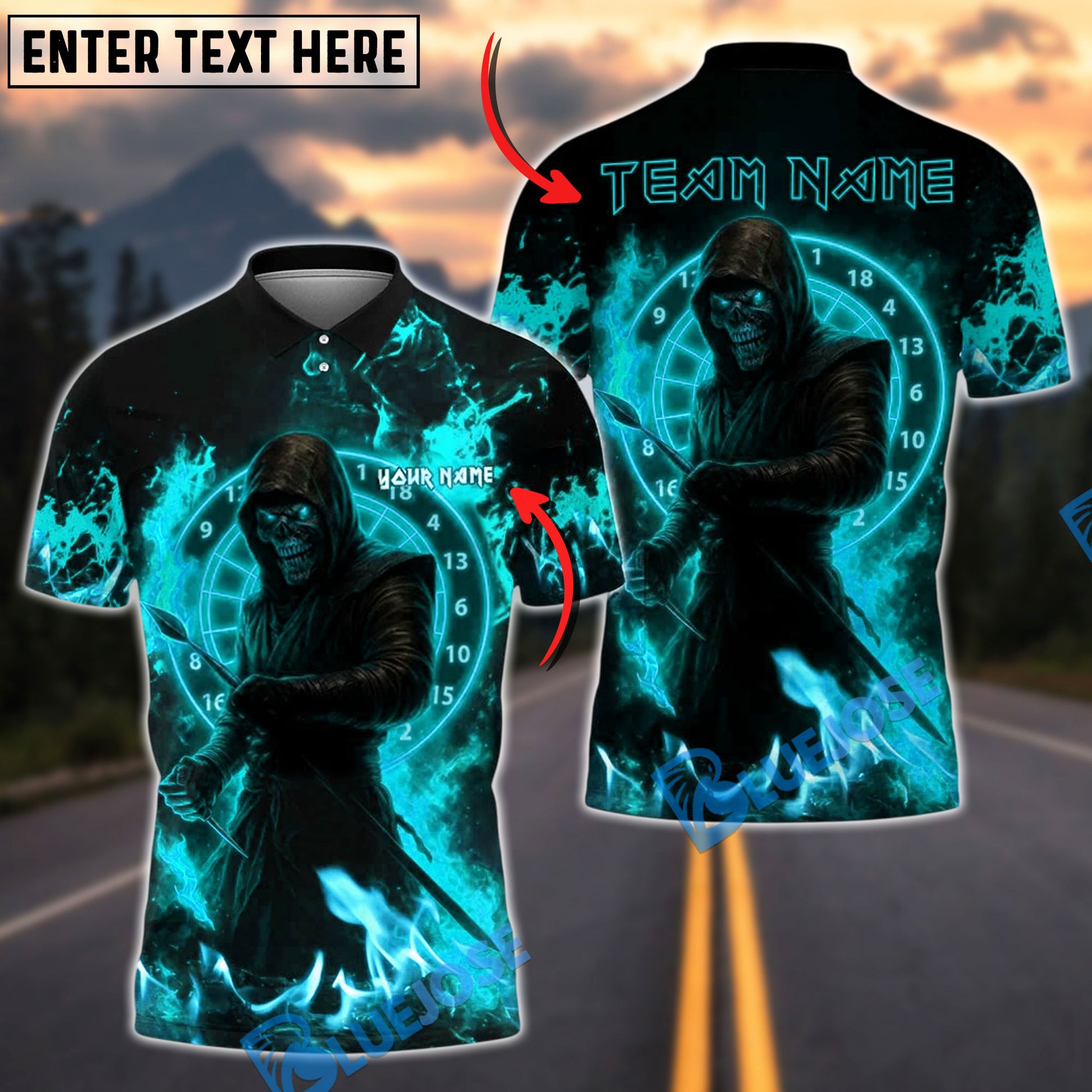 BlueJose Darts Reaper Fire Dark Hood Customized Name, Team Name 3D Shirt (4 Colors)