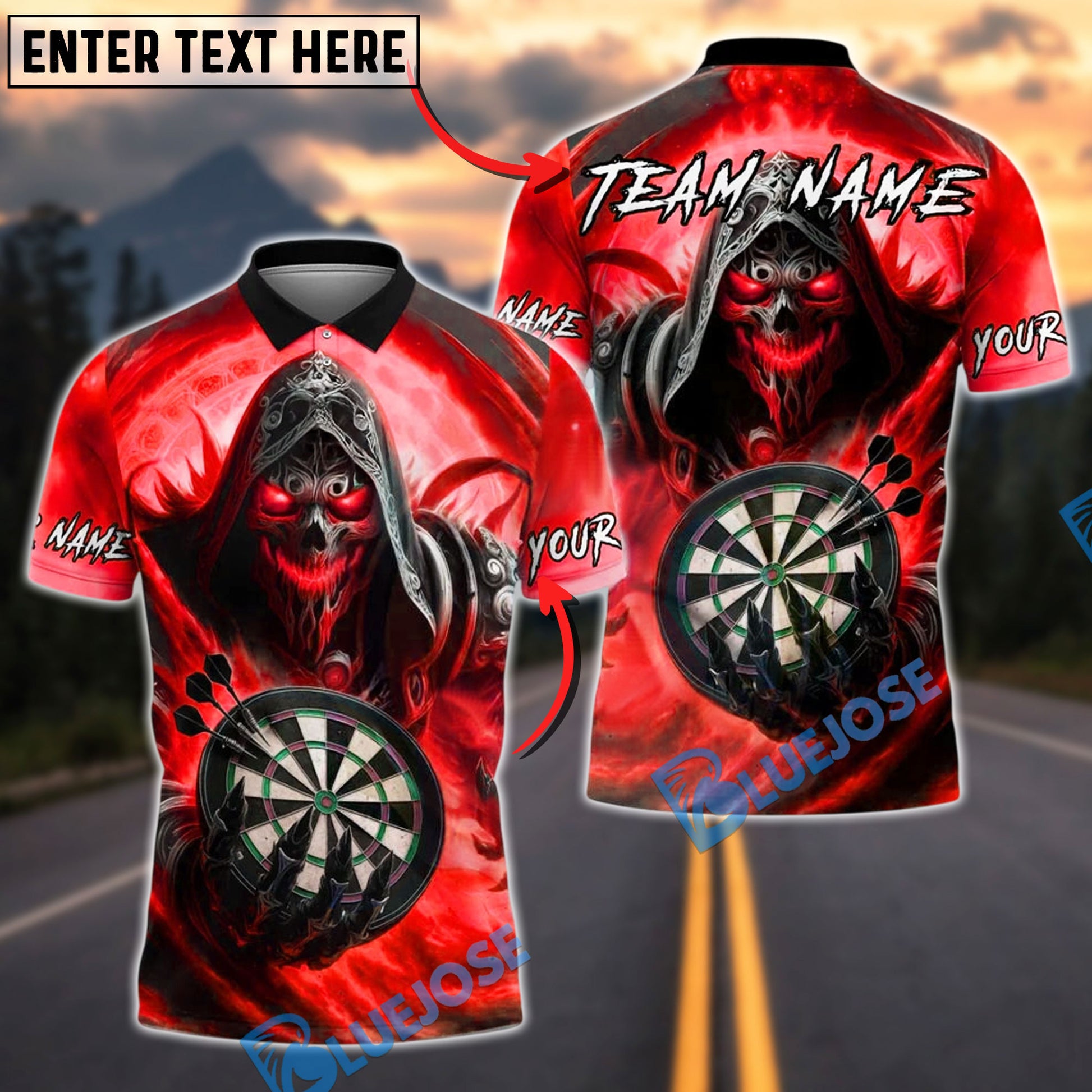 BlueJose Darts Reaper Ghost Skull Personalized Name, Team Name Unisex Shirt (4 Colors)