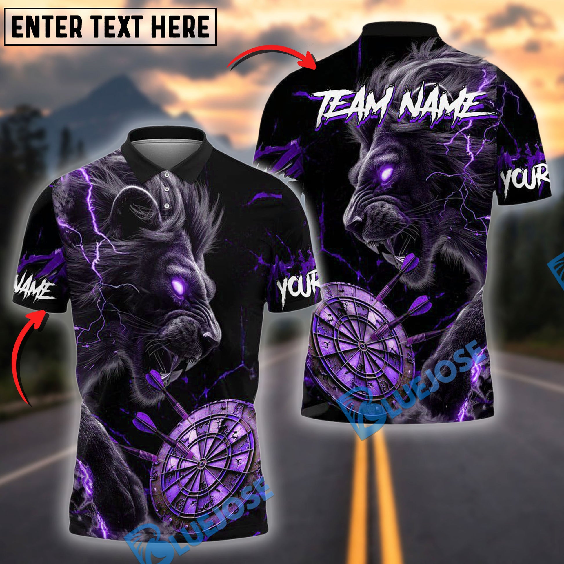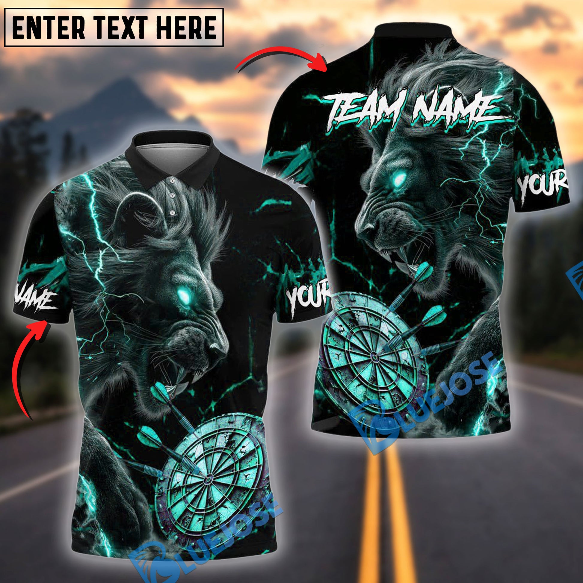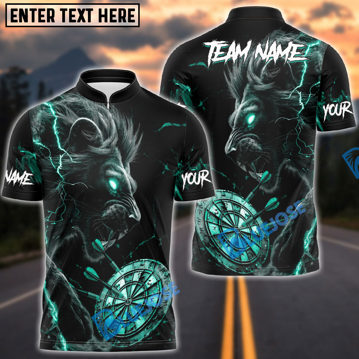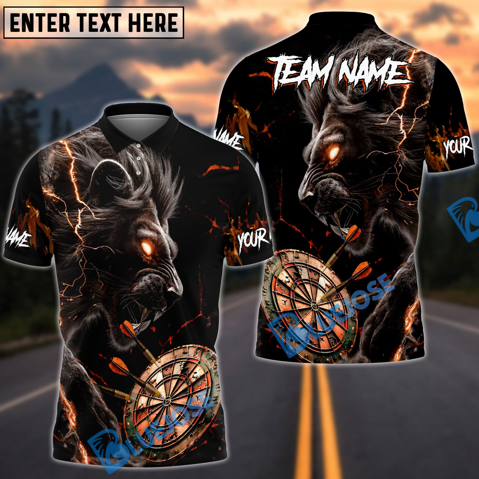 BlueJose Darts Roaring Flame Lion Personalized Name, Team Name Shirt (4 Colors)