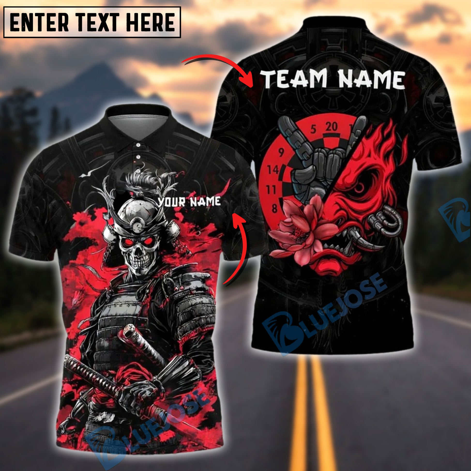 BlueJose Darts Samurai Skull Demon Customized Name, Team Name 3D Shirt (4 Colors)