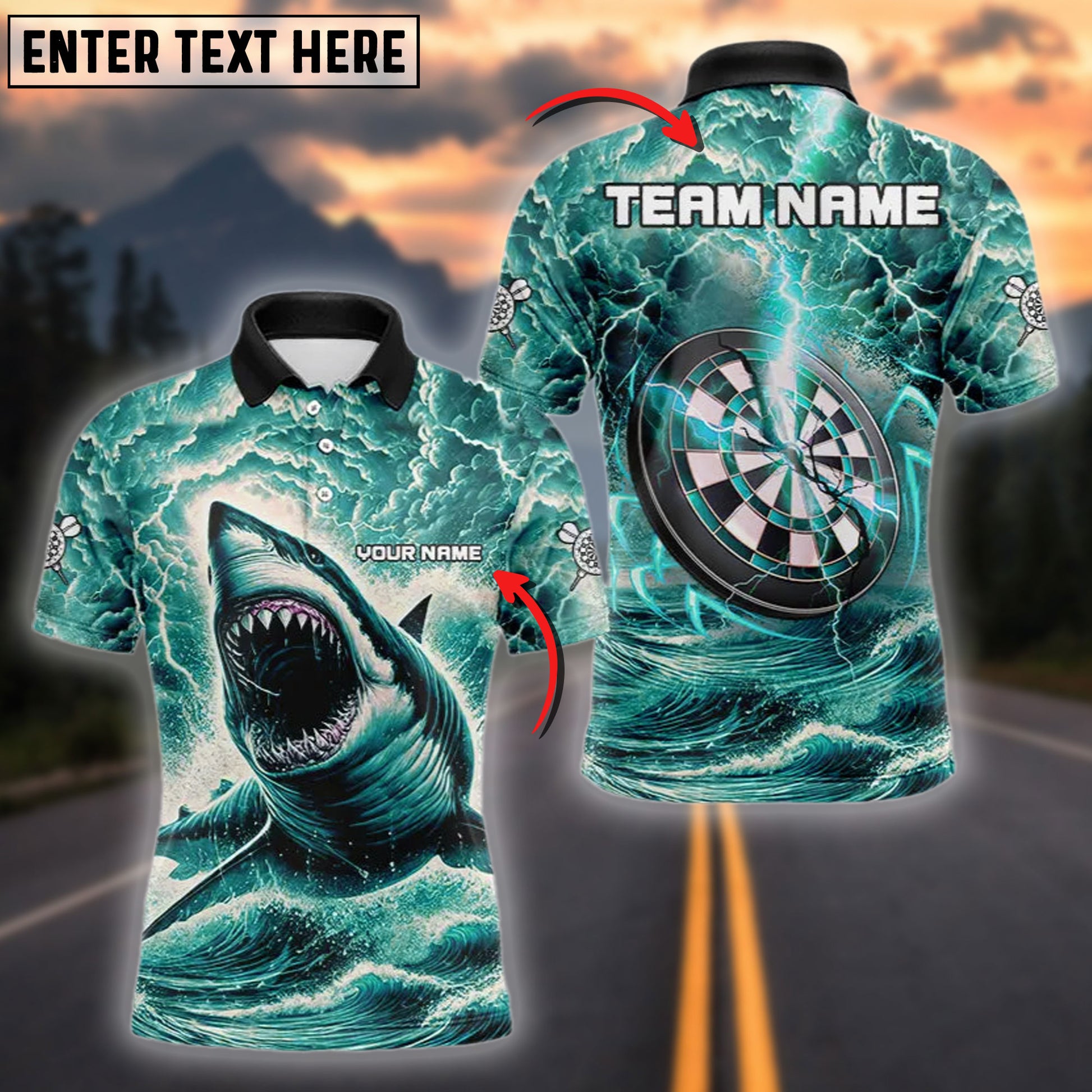 BlueJose Darts Shark Blue Lightning Personalized Name, Team Name Shirt (4 Colors)