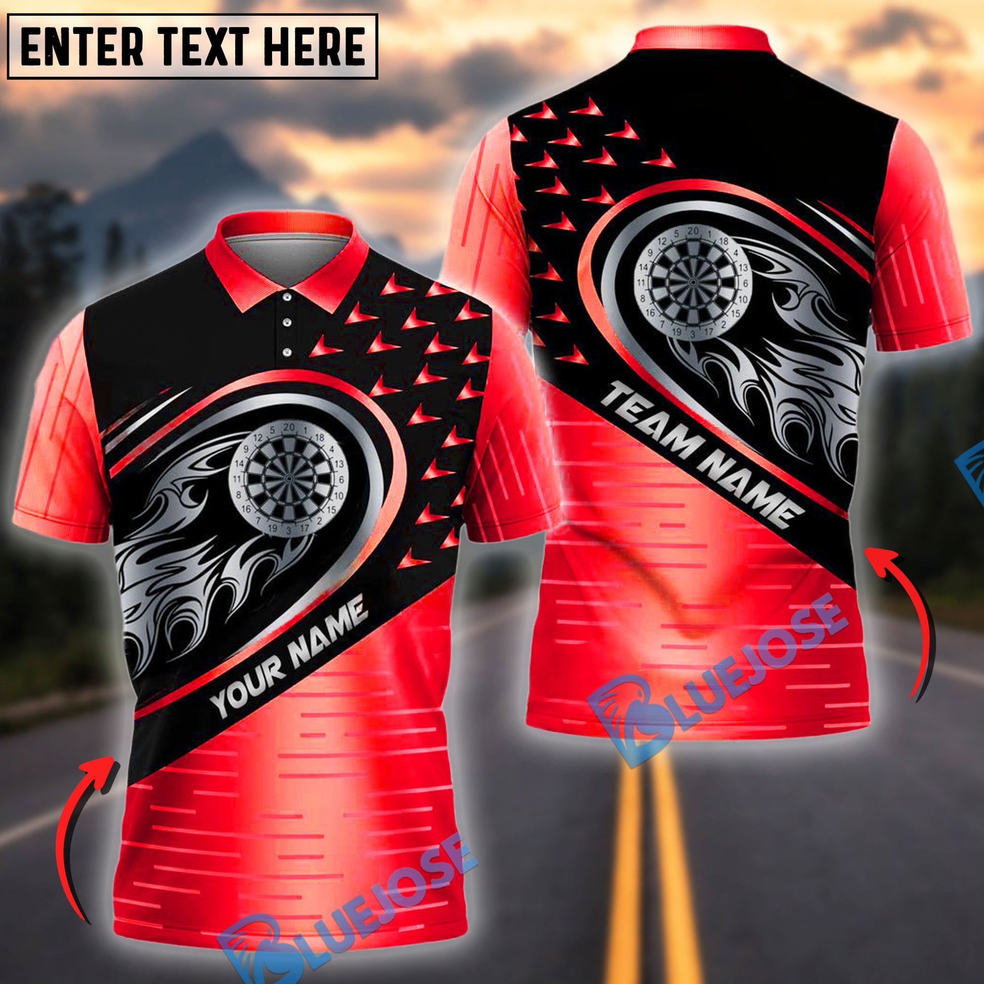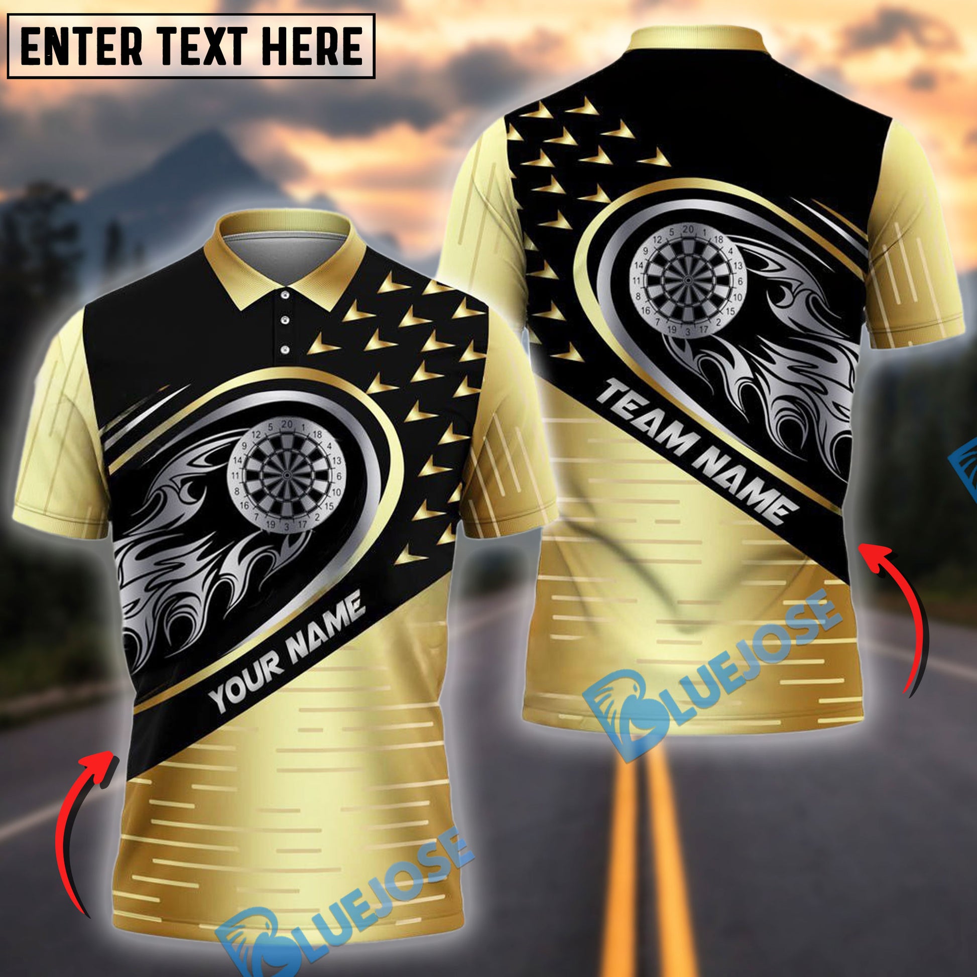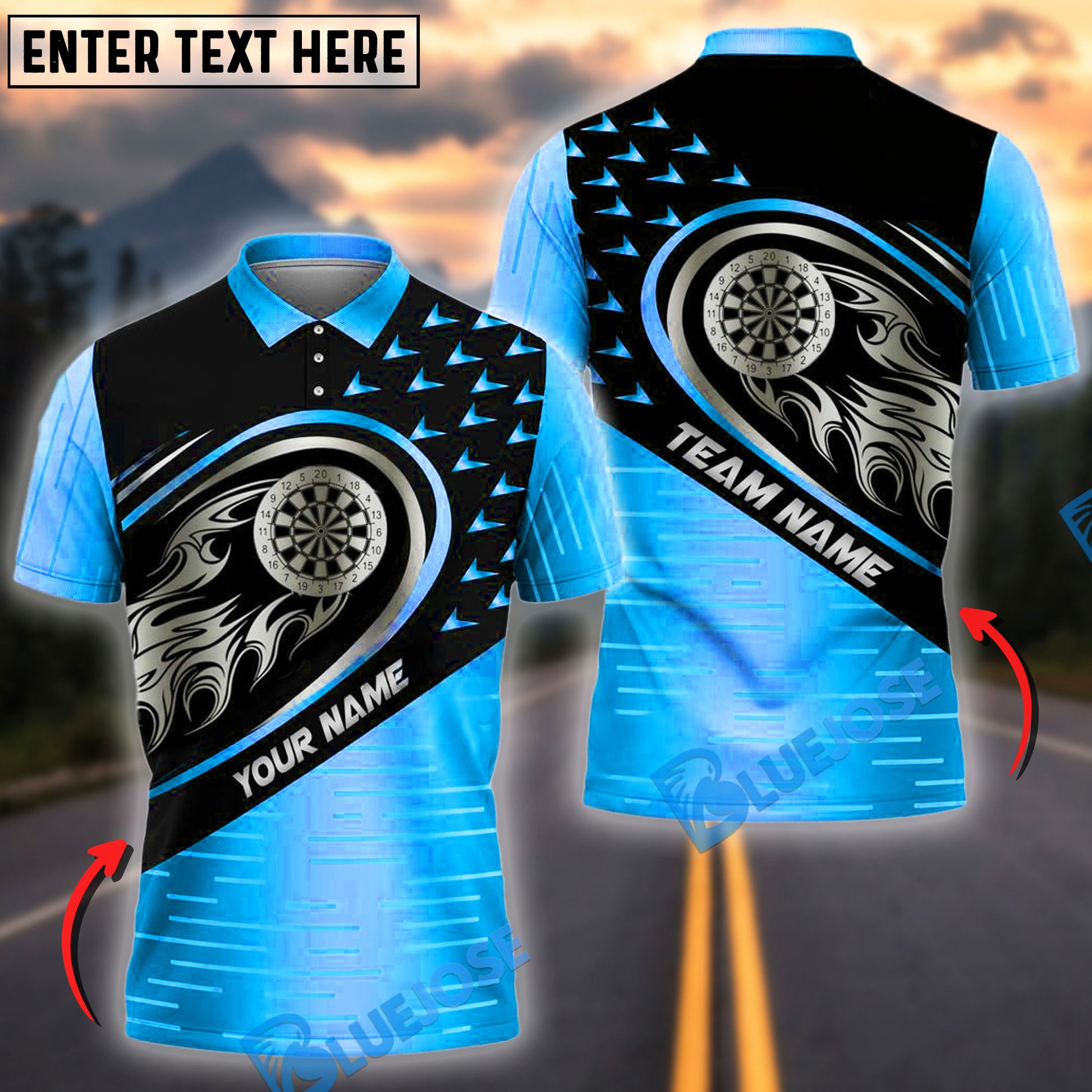 BlueJose Darts Silver Flame Dartboard Personalized Name, Team Name Shirt (4 Colors)