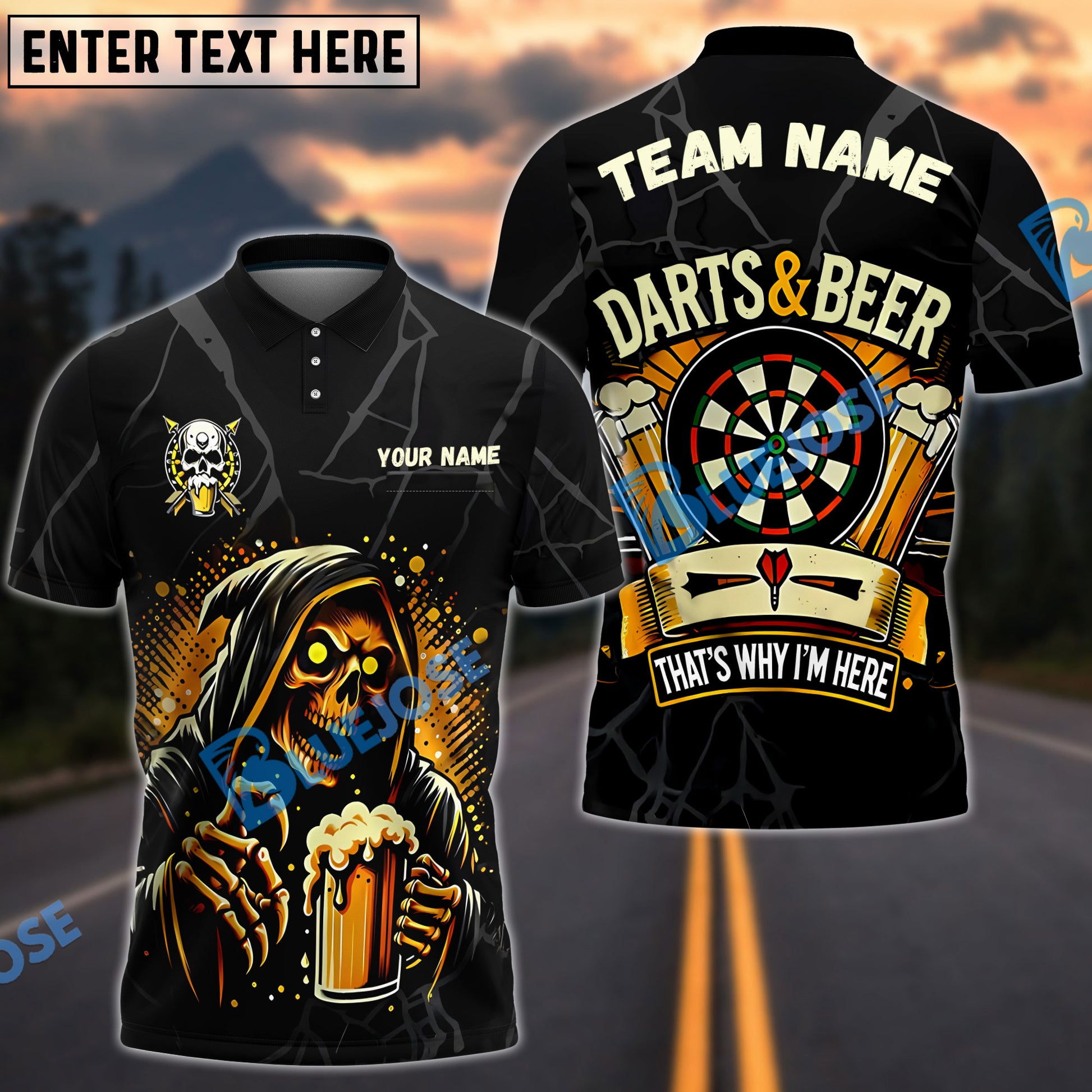 BlueJose Darts Skull Reaper Beer Customized Name, Team Name 3D Shirt