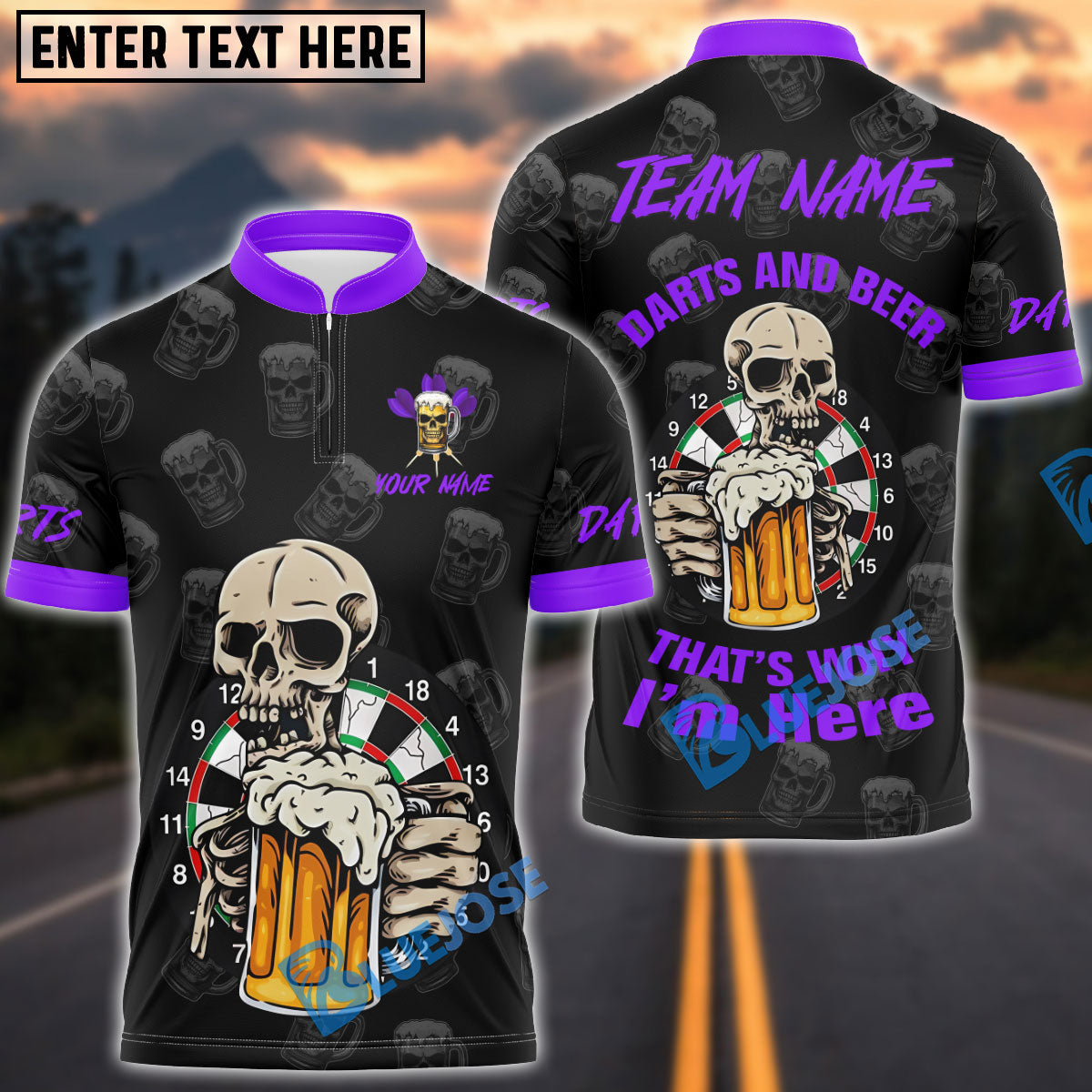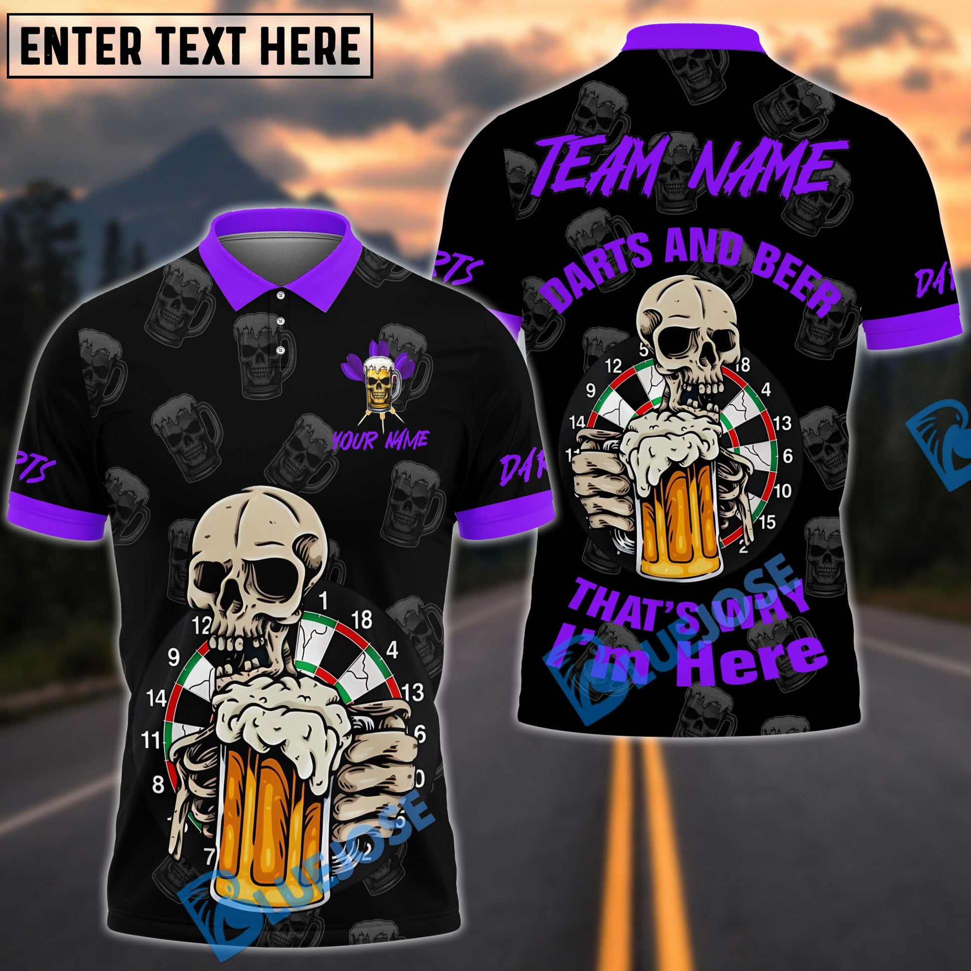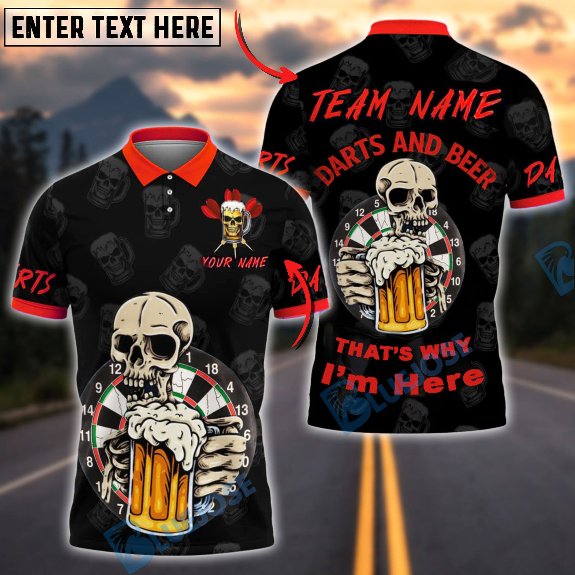 BlueJose Darts Skull Beer Mug That’s Why I’m Here Customized Name, Team Name 3D Shirt (4 Colors)