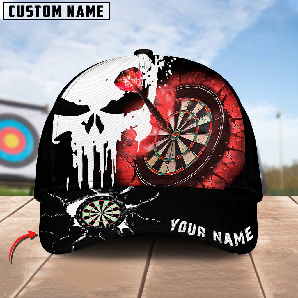 BlueJose Darts Skull Dartboard Pattern Personalized Name Cap (4 Colors)