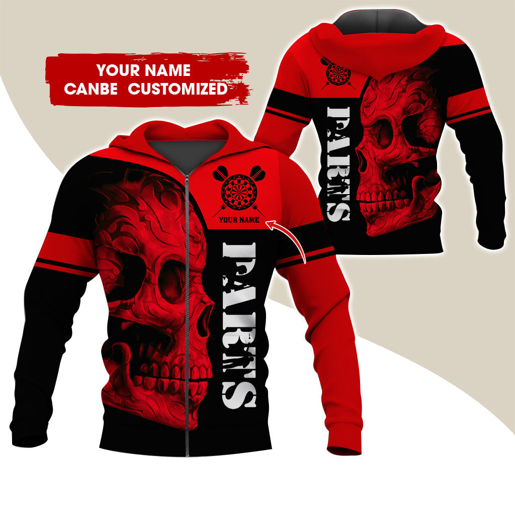 BlueJose Darts Skull Personalized Name, Team Name Hoodie