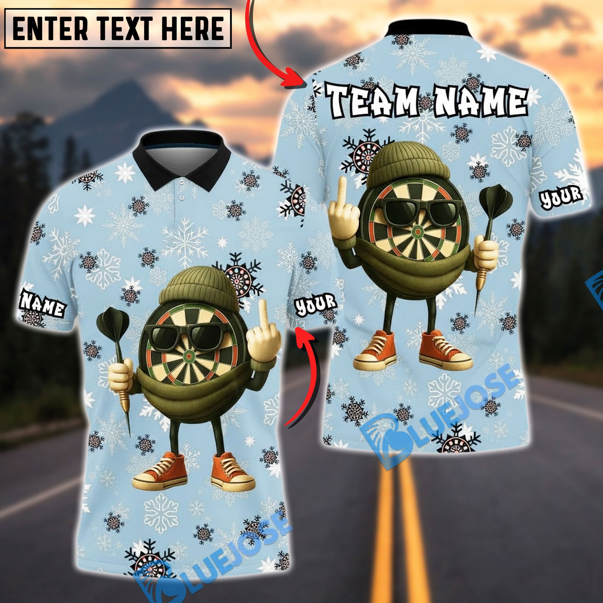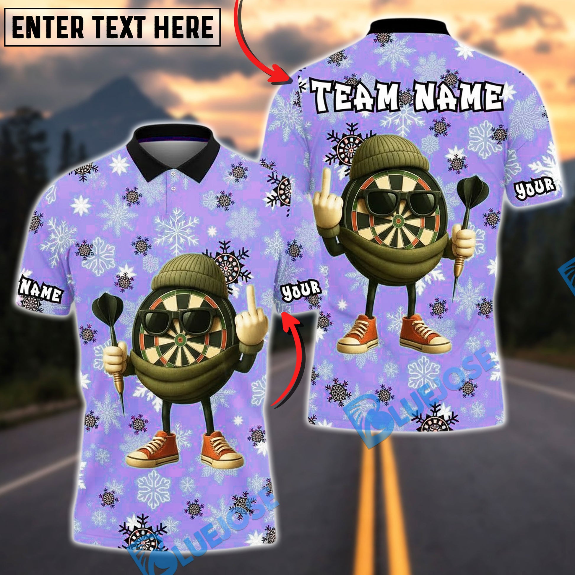 BlueJose Darts Snowflake Winter Dartboard Chill Personalized Name, Team Name Unisex Shirt (4 Colors)