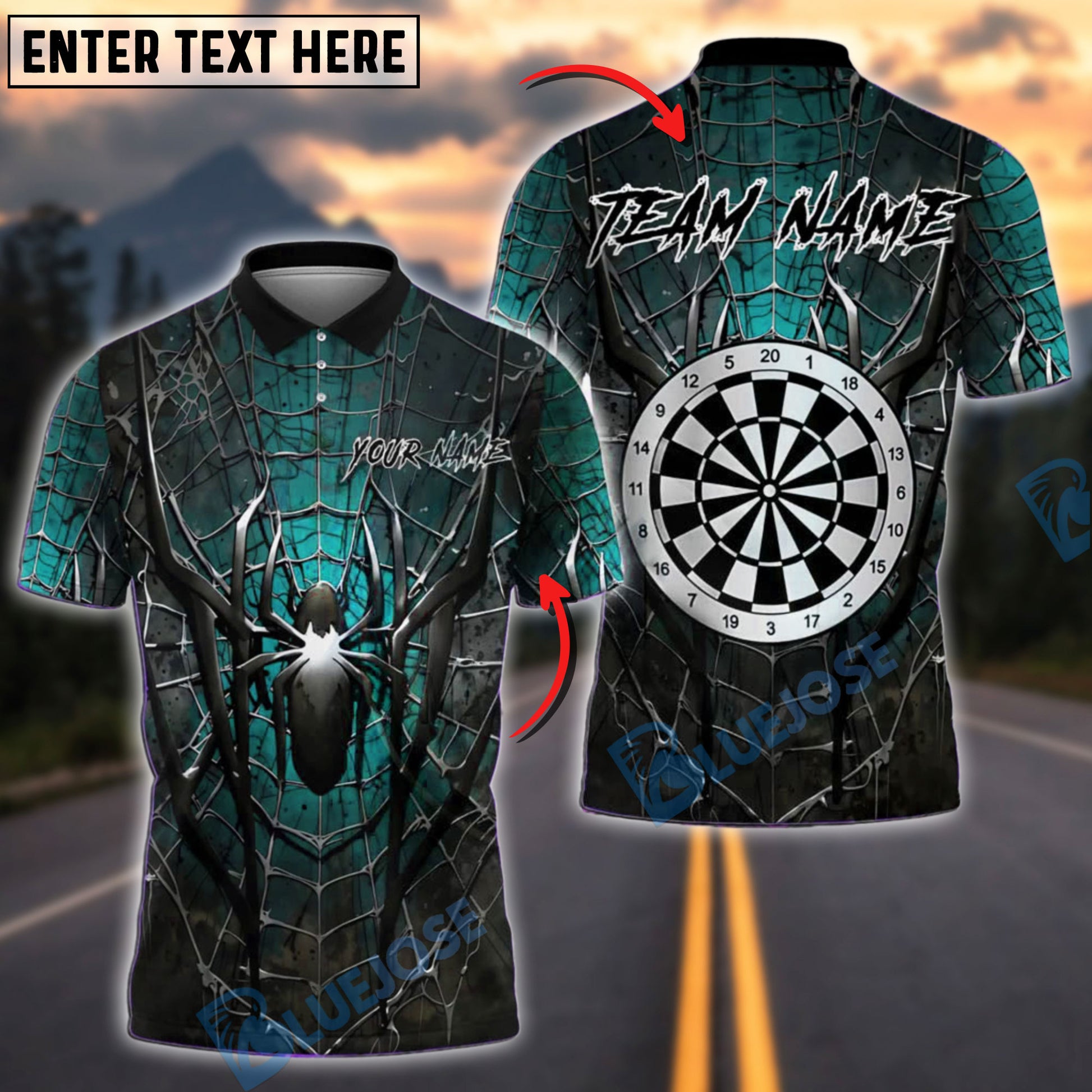 BlueJose Darts Spider Web Dark Customized Name, Team Name 3D Shirt (4 Colors)