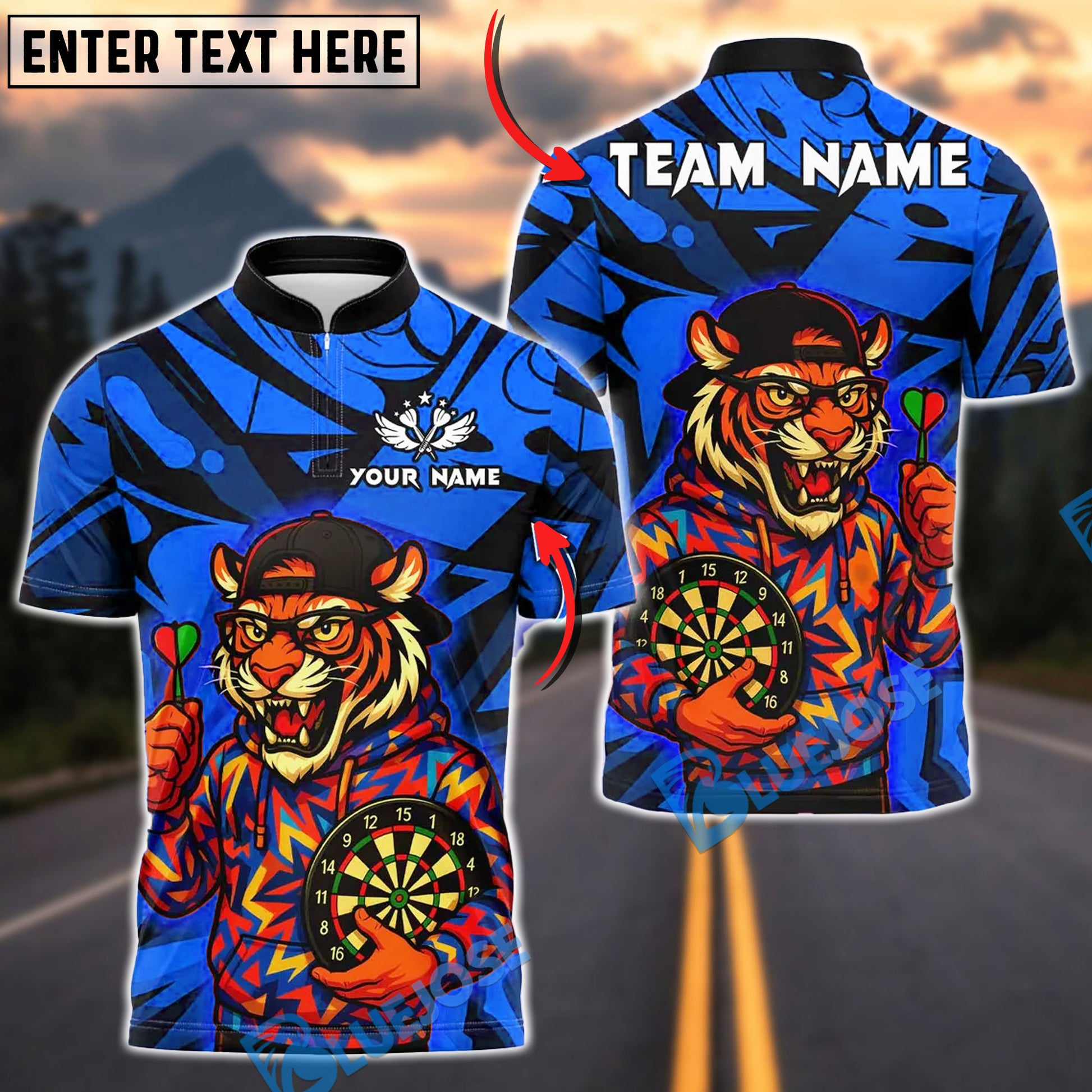 BlueJose Darts Streetwear Tiger with Dartboard Customized Name, Team Name 3D Shirt (4 Colors)
