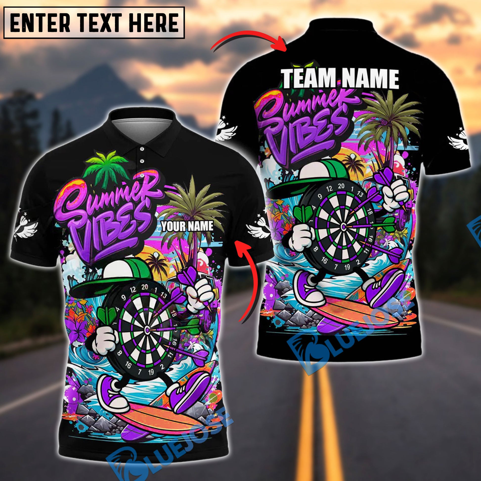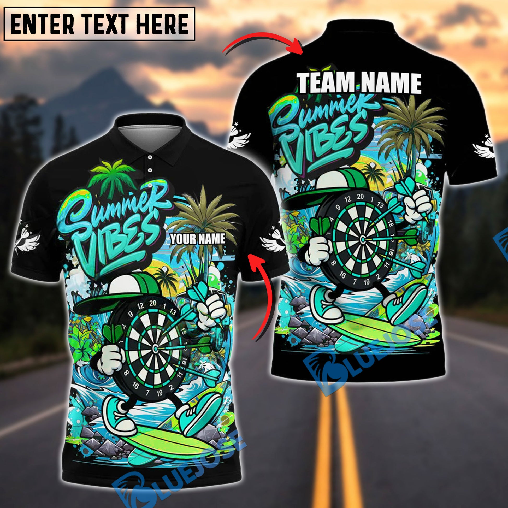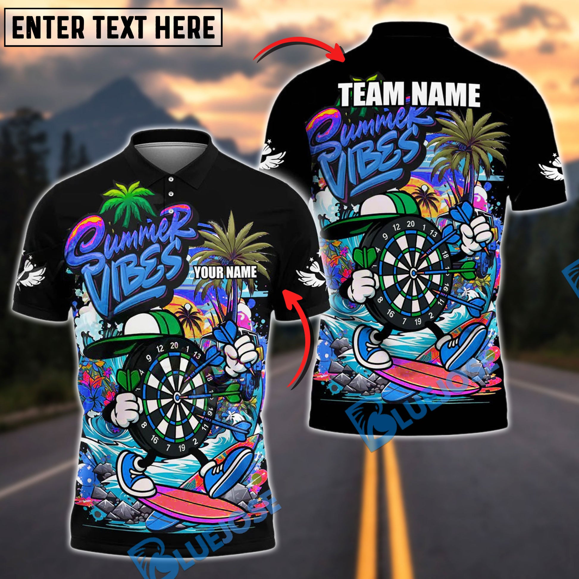 BlueJose Darts Summer Vibes Surf Style Personalized Name, Team Name Shirt (4 Colors)
