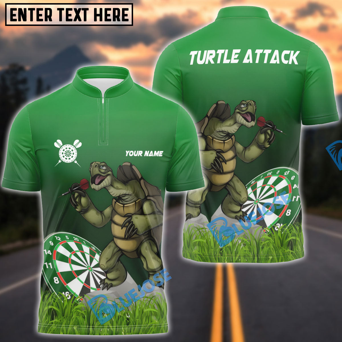 BlueJose Darts Turtle Throwing Darts Personalized Name And Team Name Shirt