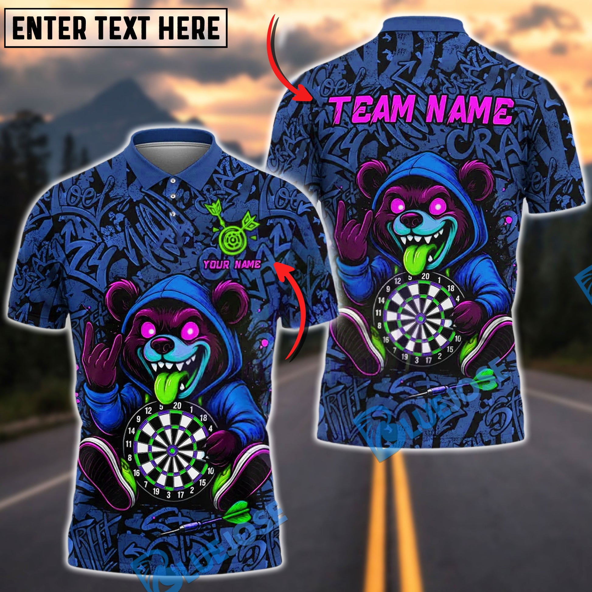 BlueJose Darts Urban Crazy Bear Customized Name, Team Name 3D Shirt (4 Colors)