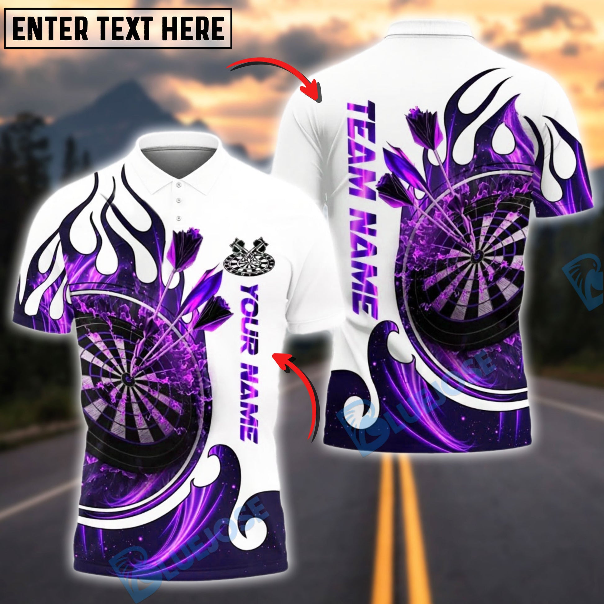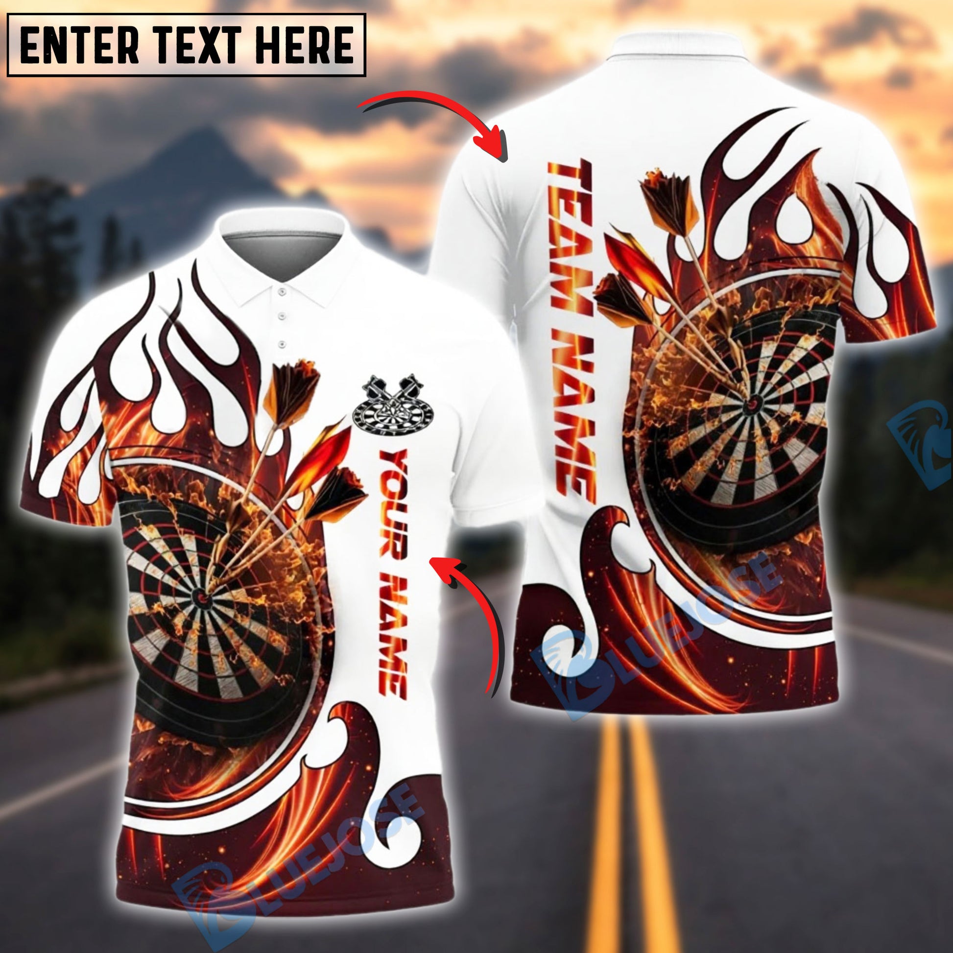 BlueJose Darts White Fire Dartboard Customized Name, Team Name 3D Shirt (4 Colors)