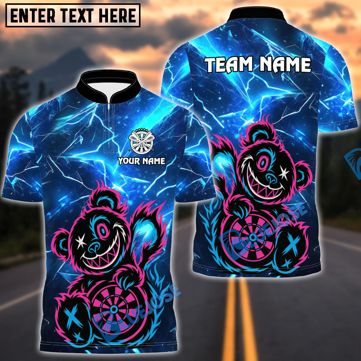 BlueJose Darts Wild Bear with Dartboard Multicolor Options Personalized Name Shirt (4 Colors)