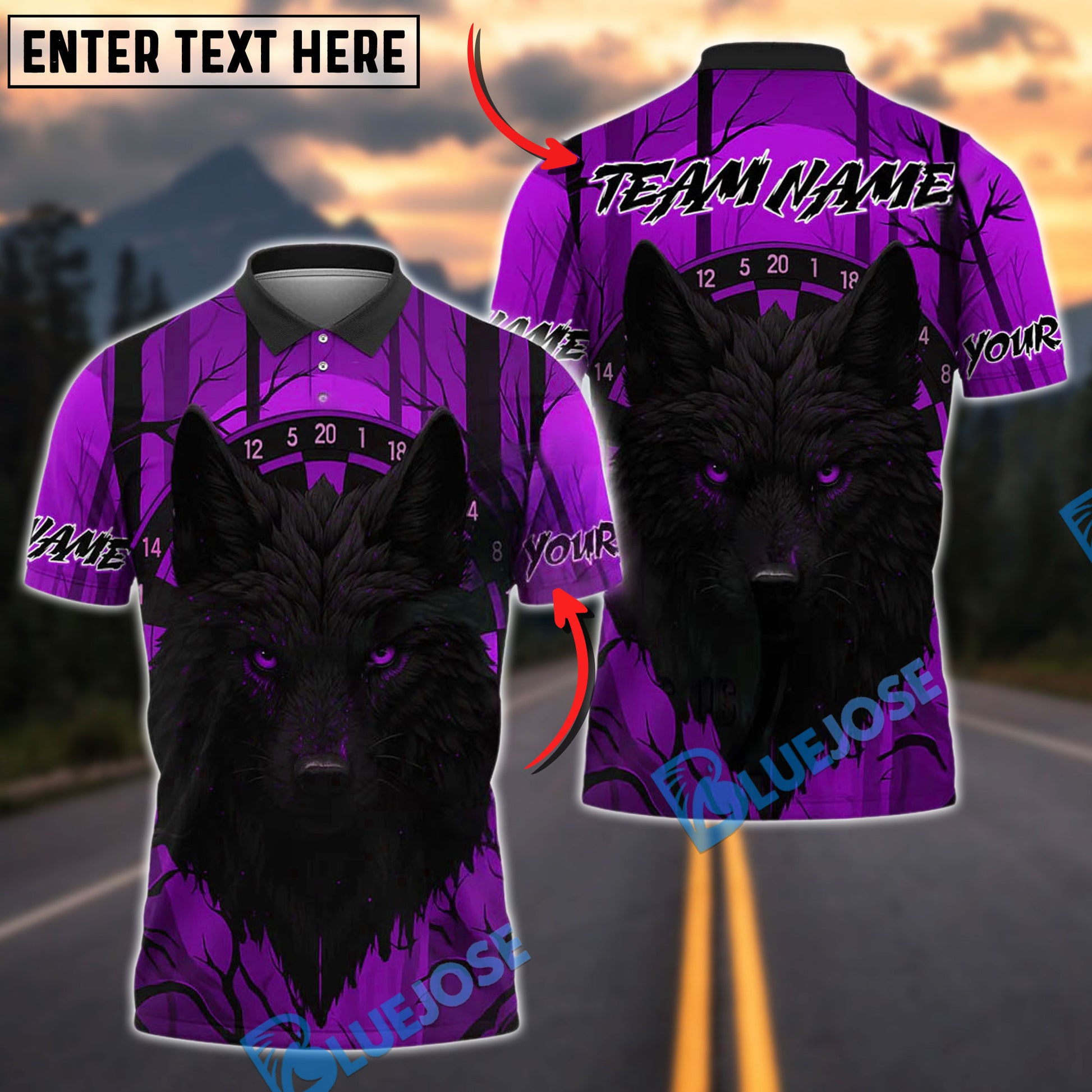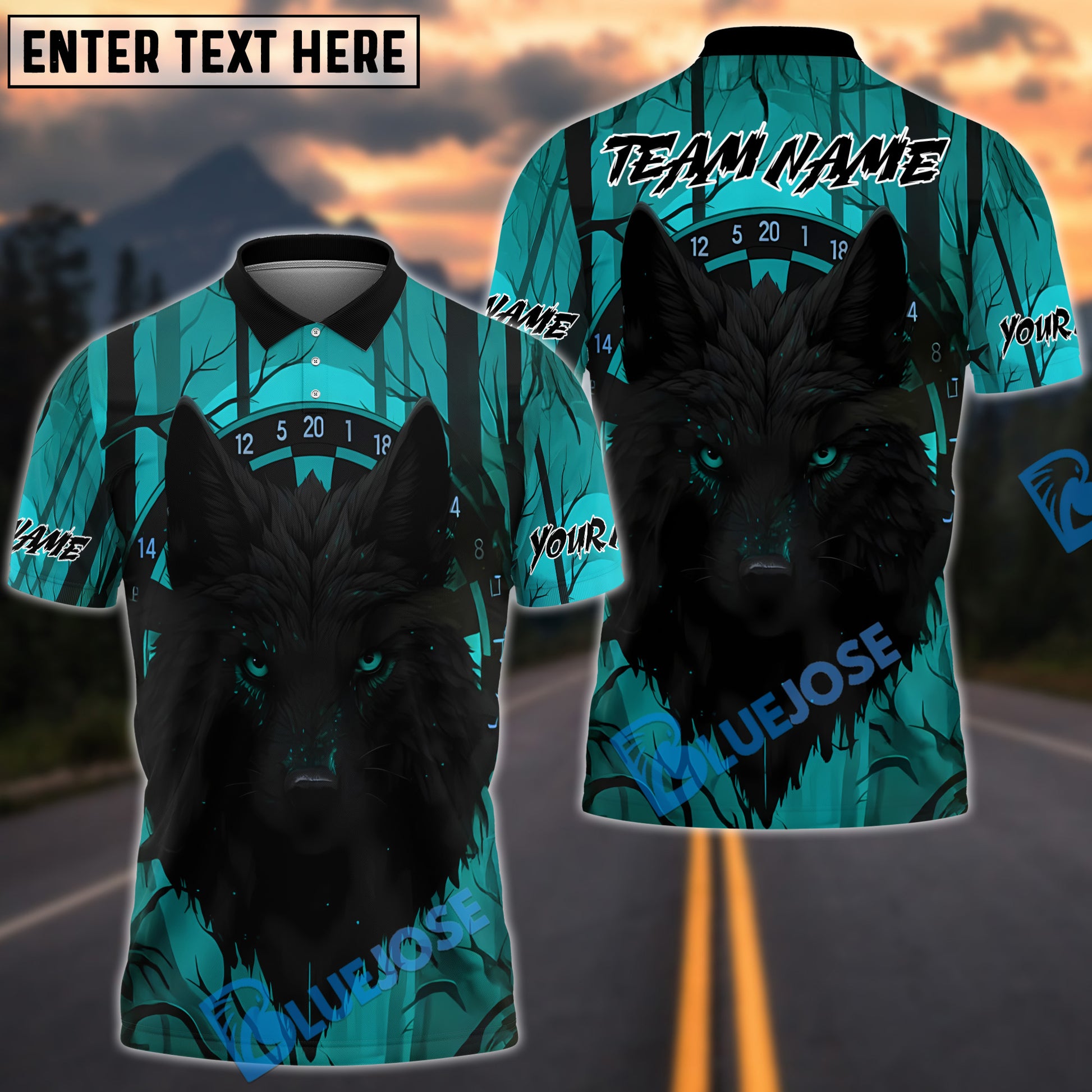 BlueJose Darts Wolf Dark Jungle Personalized Name, Team Name Shirt (4 Colors)