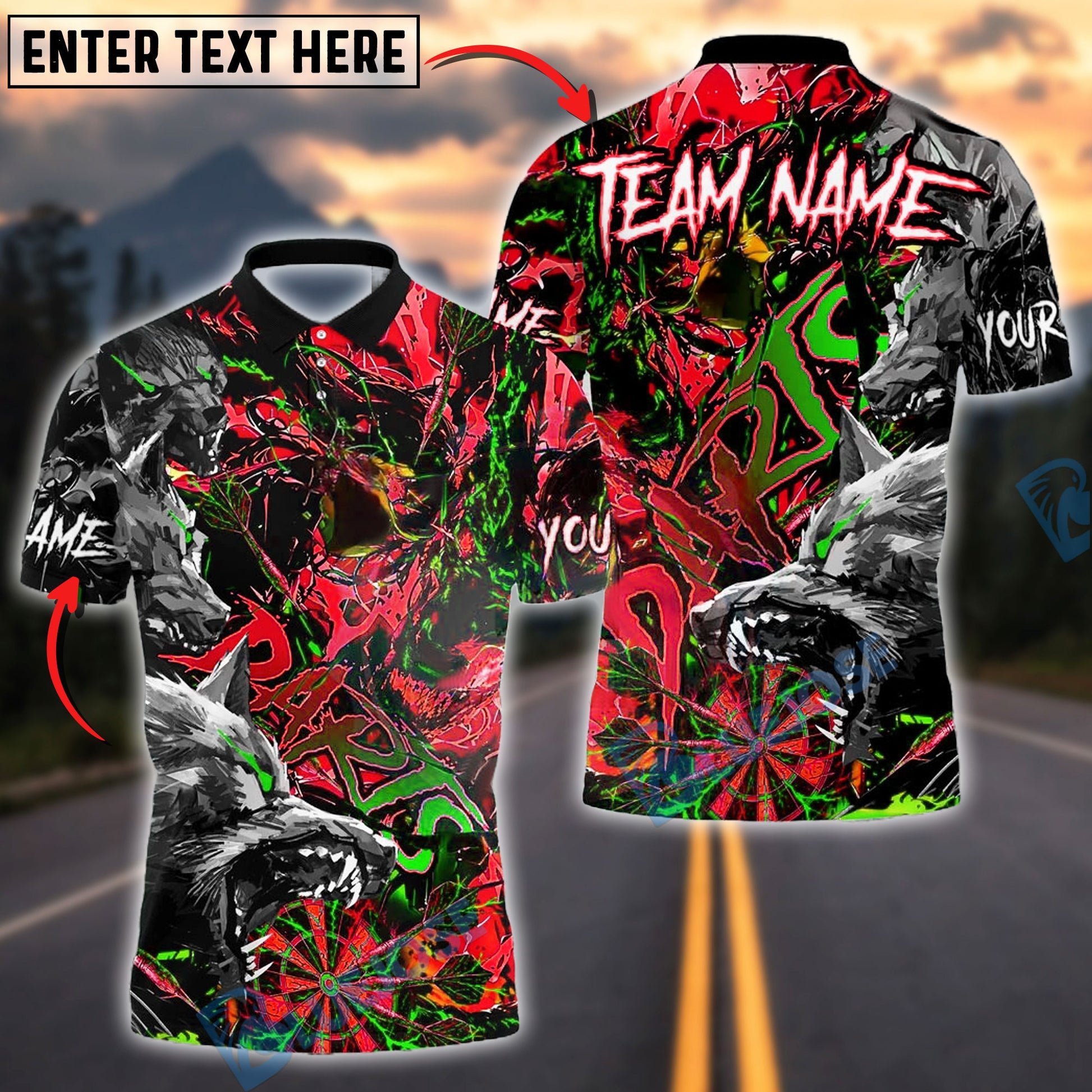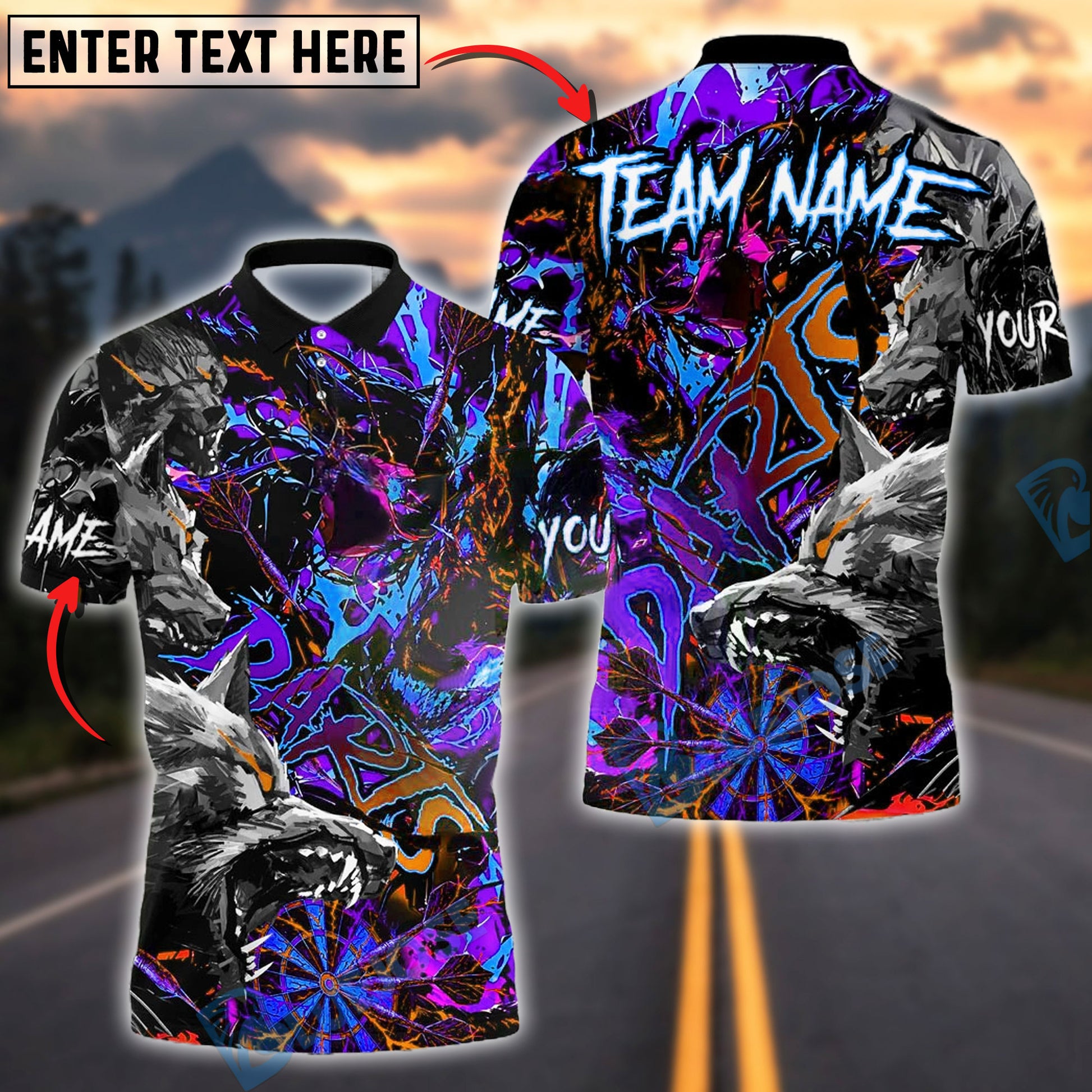 BlueJose Darts Wolf Design Dark Graffiti Style Customized Name, Team Name 3D Shirt (4 Colors)